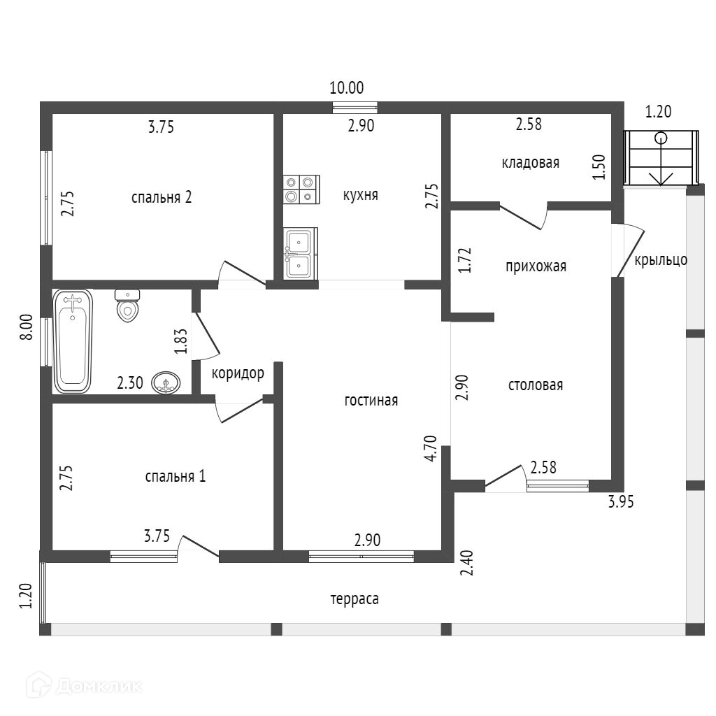 Общая площадь 92.6 м2