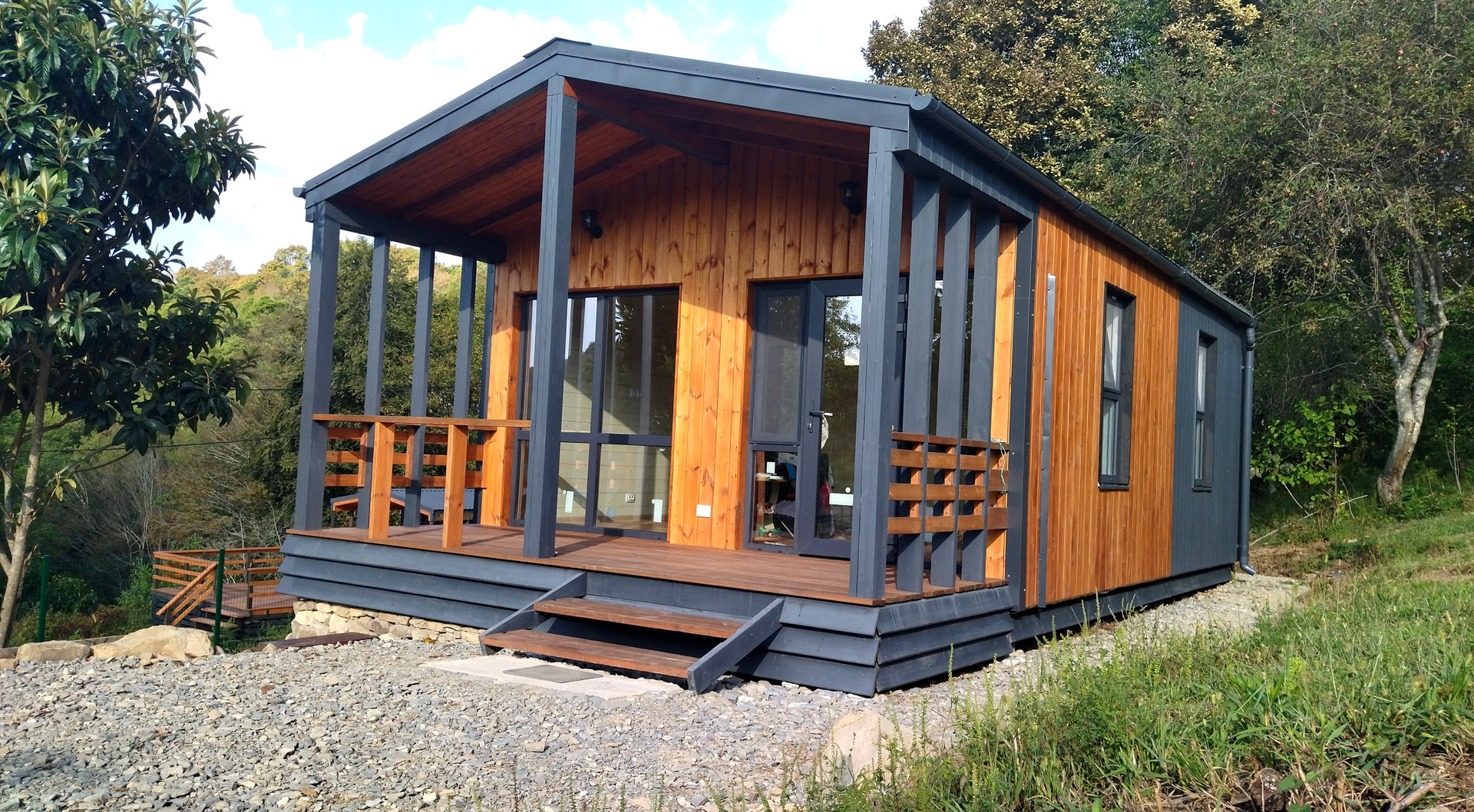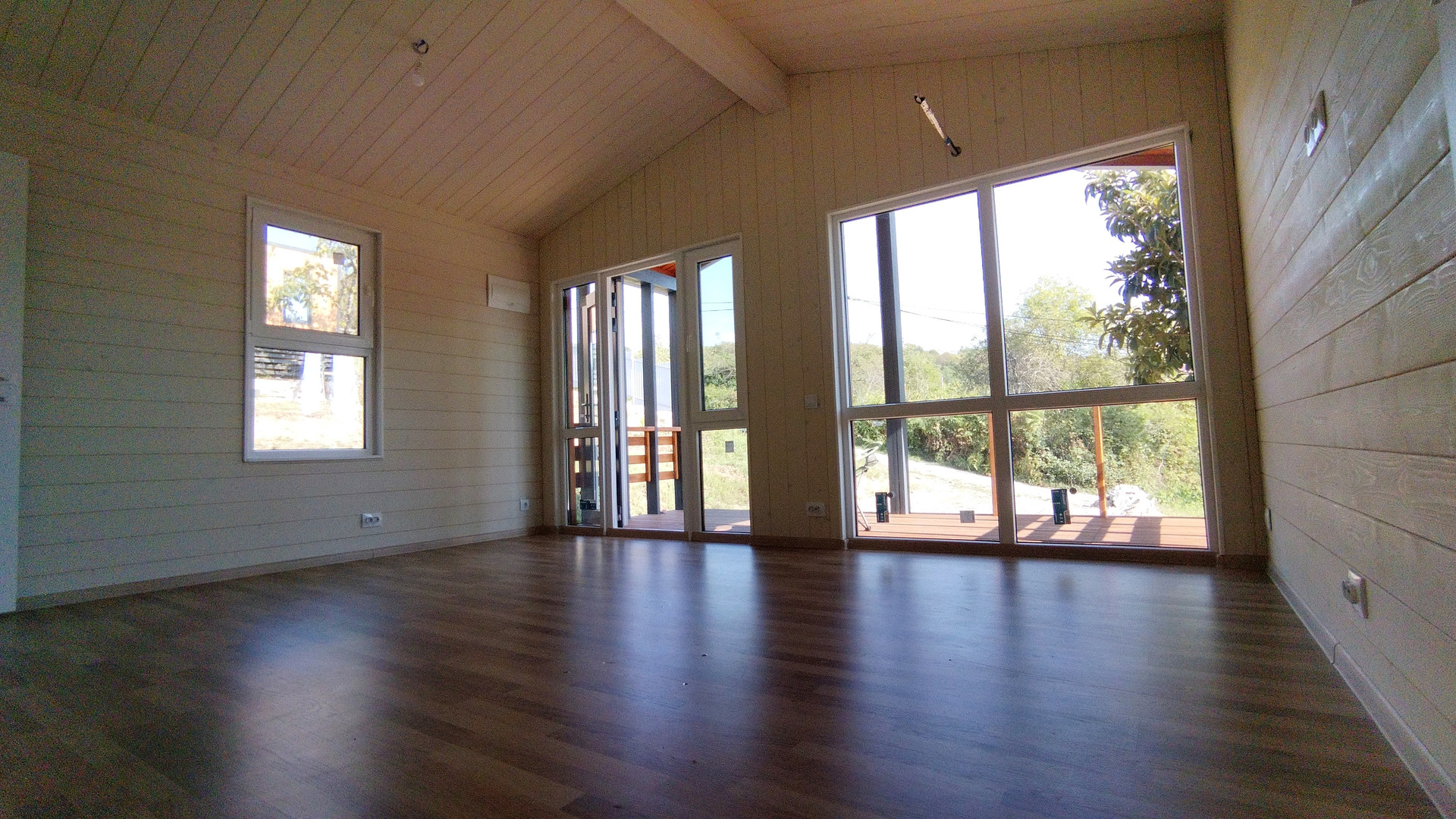 Продажа от собственника. Новый дом в небольшом строящемся коттеджном посёлке в стиле «Барнхаус».  Территория закрыта, посторонних нет. Верхнее Лоо, 5 км. от моря.  Хорошая транспортная доступность. Активно развивающийся район, есть школа, магазины, ресторан, аквапарк и в то же время рядом лес, красивое горное ущелье, прекрасный панорамный вид. Статус ИЖС, кадастр, возможна ипотека. Проектировщик и исполнитель строительных работ - компания «Серьёзное Дело». Дом построен по каркасно-рамочной или т.н. «канадской» технологии - каркас из древесины камерной сушки обработанный огнебиозащитой , утеплённый плитной минеральной ватой на винтовых сваях с двухскатной крышей. Две комнаты, санузел, терраса. Высота потолков 2,4 – 3,0 м. Автономное водоснабжение – артезианская скважина, электросеть 15 кВт. Тариф на электричество сельский. Канализация – индивидуальный автономный ЛОС. Отделка фасада имитацией бруса окрашенная красками Tikkurila.  Кровля – профнастил с полимерным шумопоглощающими покрытием.  В доме выполнена чистовая отделка из качественных материалов: вагонка «штиль» заводской окраски безопасными красителями на водной основе, водостойкий ламинат QuickStep, межкомнатные двери ProfilDoors. В санузле «тёплый пол» и установлена сантехника. Панорамные окна в пол и терраса под крышей с великолепным видом. Дом готов к проживанию.