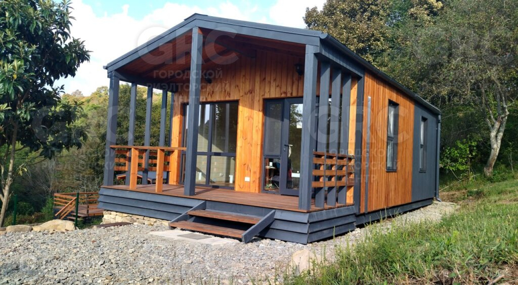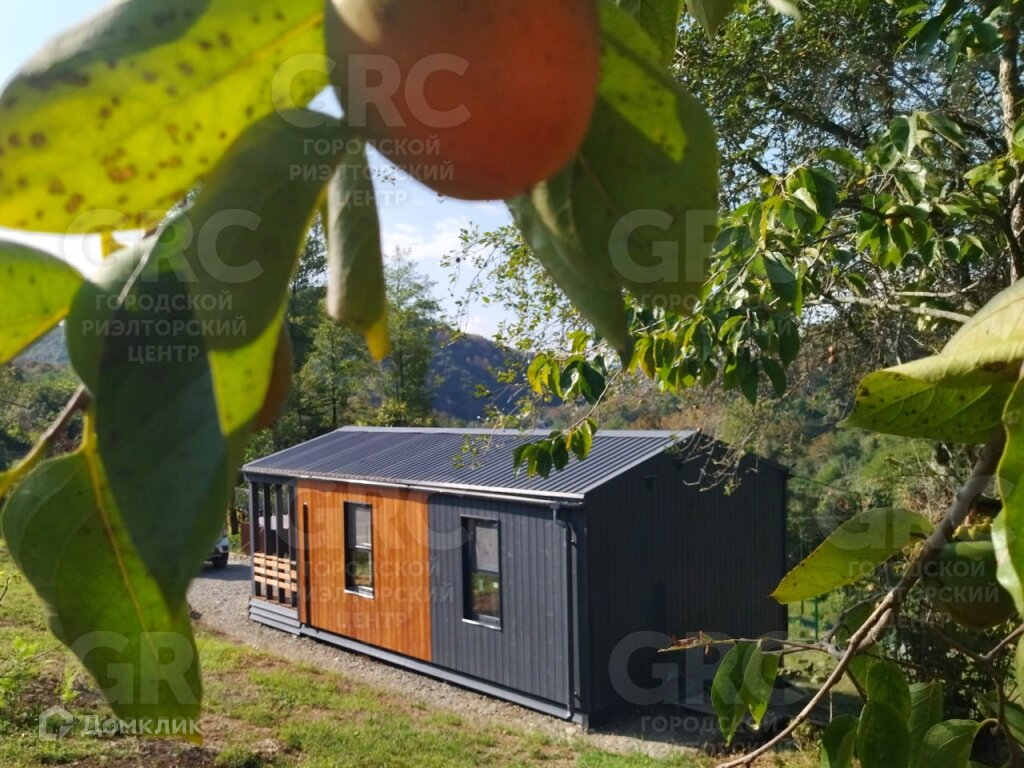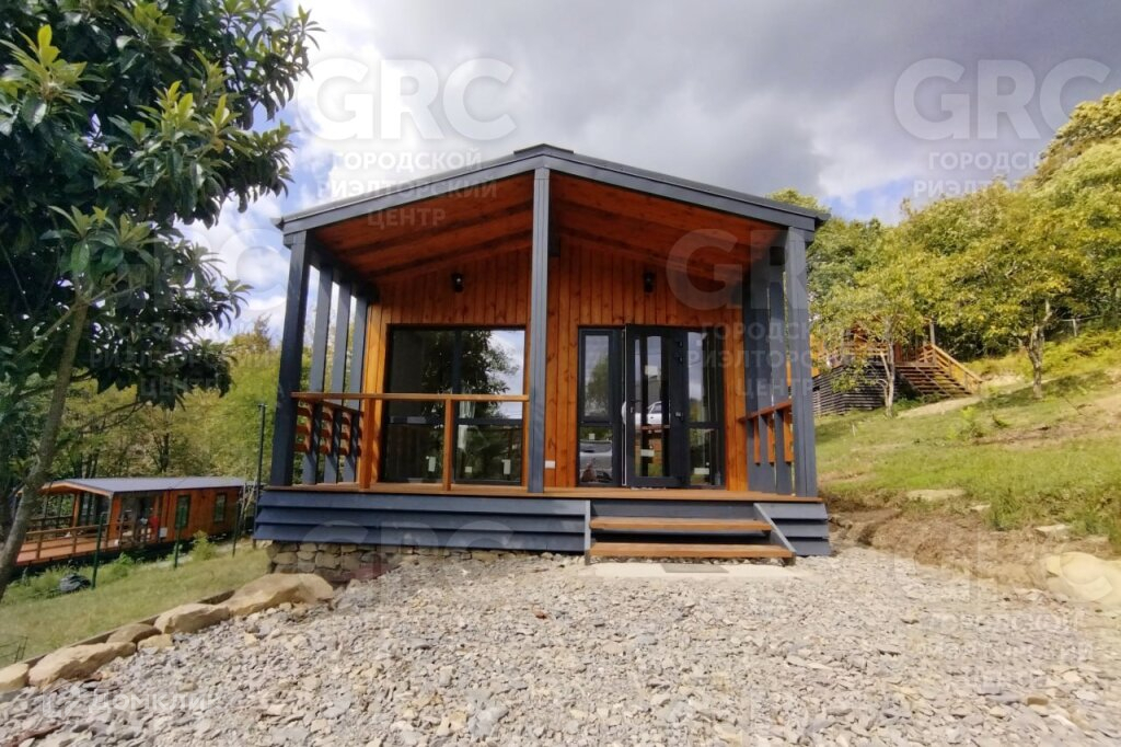 Площадь участка - 425 м2, площадь дома - 42 м2, 2 комнаты. Цена: 7,9 млн. руб. Новый дом в небольшом строящемся коттеджном посёлке в стиле «Барнхаус». Территория закрыта, посторонних нет. Верхнее Лоо, 5 км. от моря. Хорошая транспортная доступность. Активно развивающийся район, есть школа, магазины, ресторан, круглогодичный аквапарк и в то же время рядом лес, красивое горное ущелье, прекрасный панорамный вид. Статус ИЖС, кадастр, возможна ипотека. Проектировщик и исполнитель строительных работ - компания «Серьёзное Дело». Дом построен по каркасно-рамочной или т.н. «канадской» технологии - каркас из древесины камерной сушки обработанный огнебиозащитой , утеплённый плитной минеральной ватой на винтовых сваях с двухскатной крышей. Две комнаты, санузел, терраса. Высота потолков 2,4 - 3,0 м. Автономное водоснабжение - артезианская скважина, электросеть 15 кВт. Тариф на электричество сельский. Канализация - индивидуальный автономный ЛОС. Отделка фасада имитацией бруса окрашенная красками Tikkurila. Кровля - профнастил с полимерным шумопоглощающими покрытием. В доме выполнена чистовая отделка из качественных материалов: вагонка «штиль» заводской окраски безопасными красителями на водной основе, водостойкий ламинат QuickStep, межкомнатные двери ProfilDoors. В санузле «тёплый пол» и установлена сантехника. Панорамные окна в пол и терраса под крышей с великолепным видом. Дом готов к проживанию.