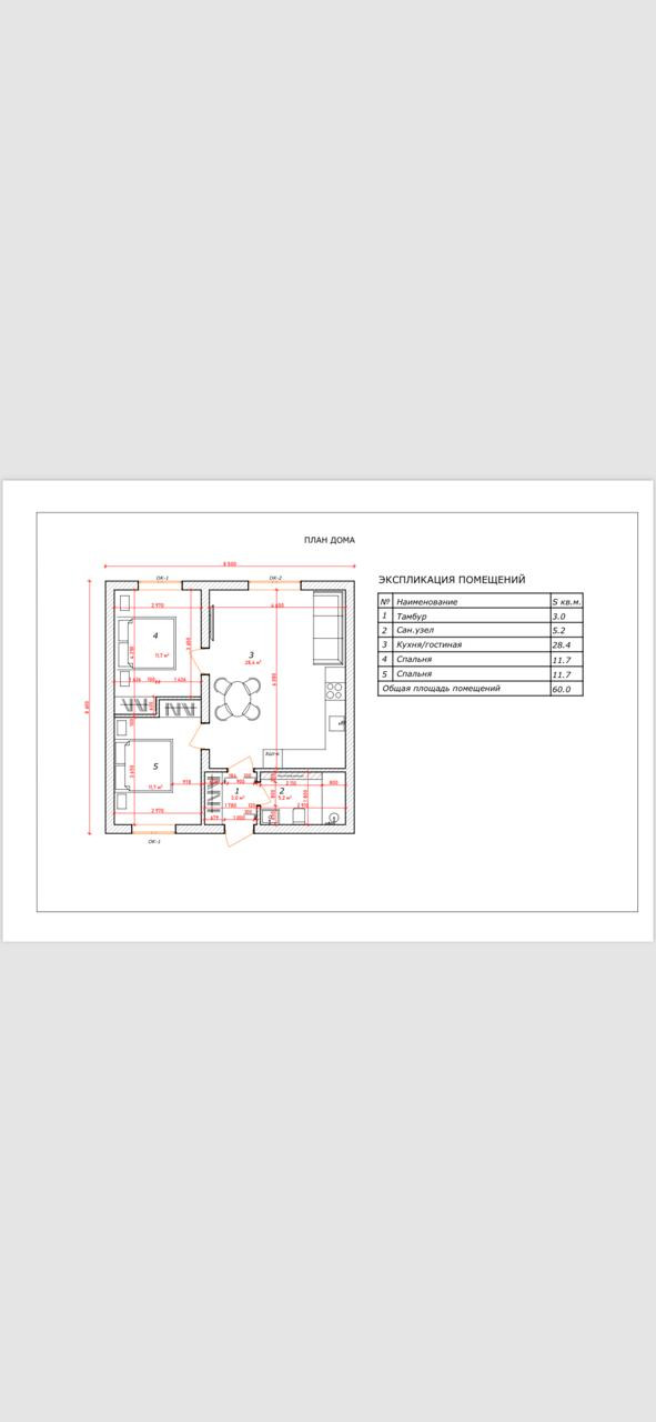 Общая площадь 60 м2