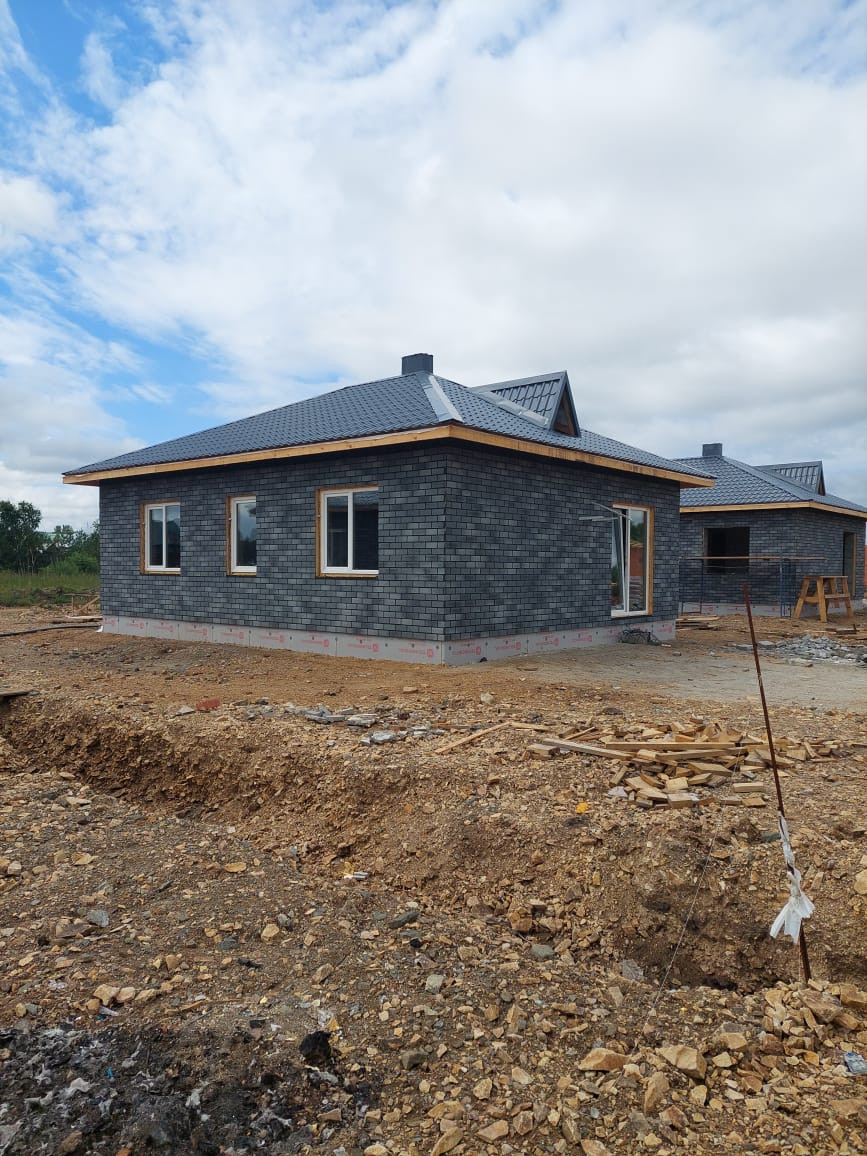 -Cтены – пенополистеролбетон, фасад Hauberk (серого цвета)