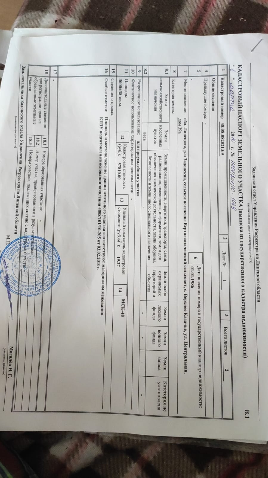 Участок 30 соток под строительство  с ветхим домом по адресу: с.Верхнее Казачье, ул. Центральная, д.39а, кадастровый номер 48:08:0820213:9, газ, свет, вода , асфальт по границе участка.