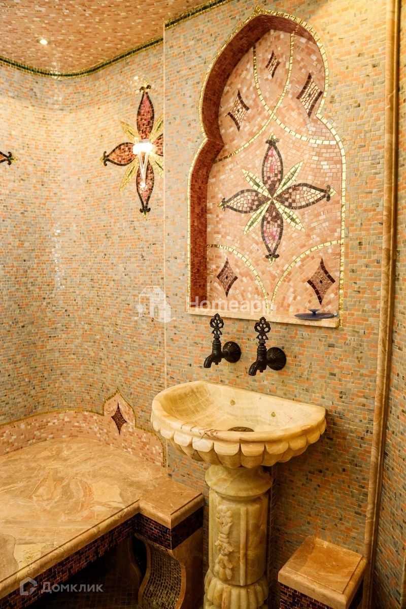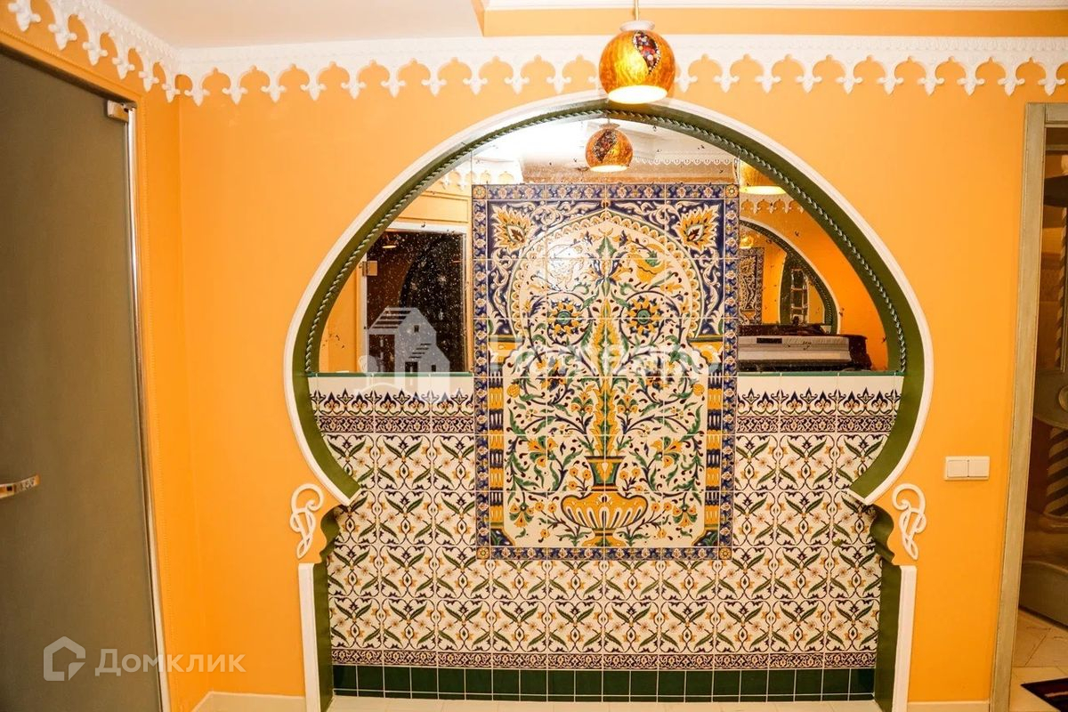 Цокольный этаж выполнен в восточном стиле, сочетая в себе сочные, яркие оттенки натуральных материалов.