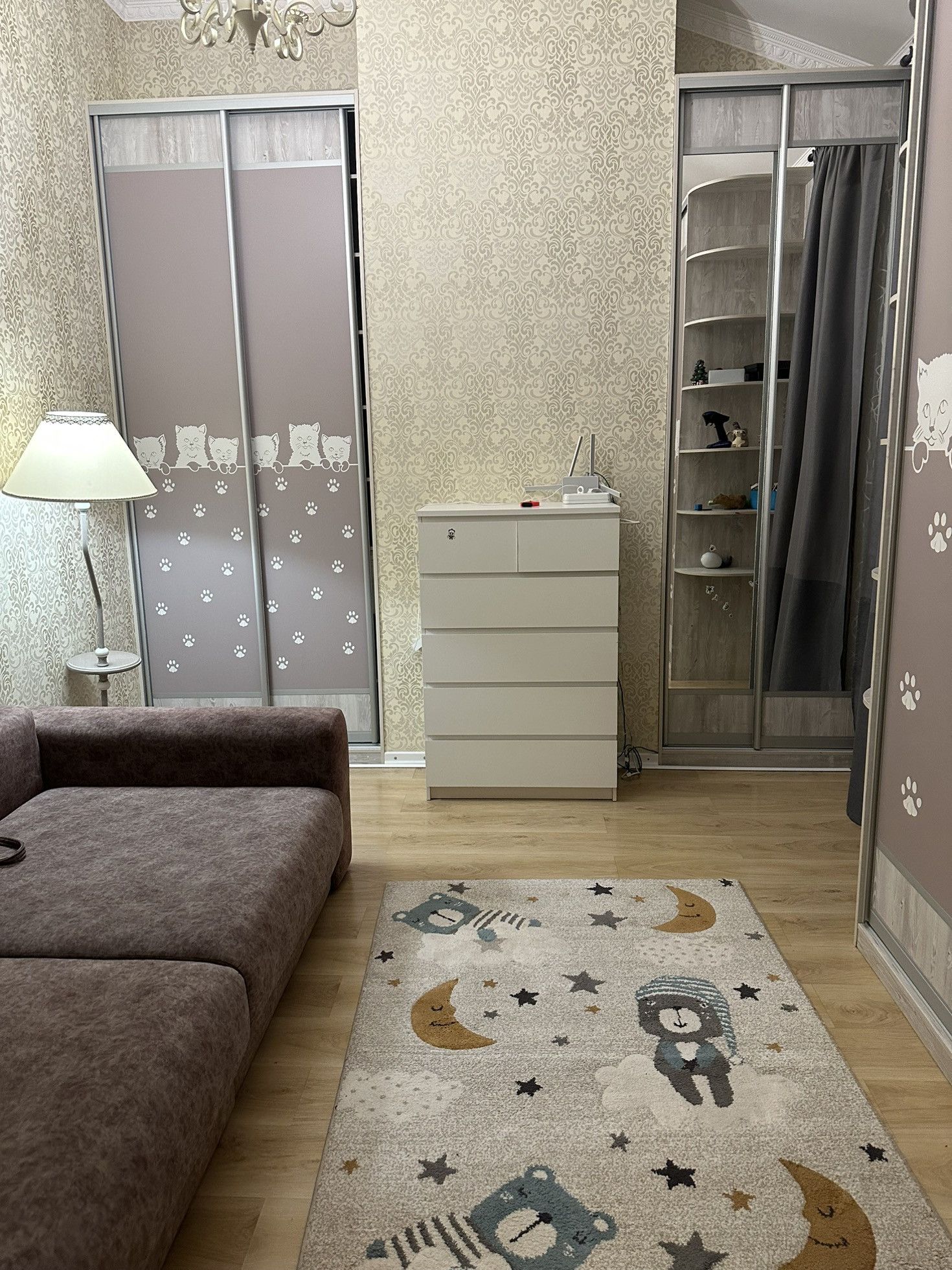 На третьем этаже кабинет , есть кровать.