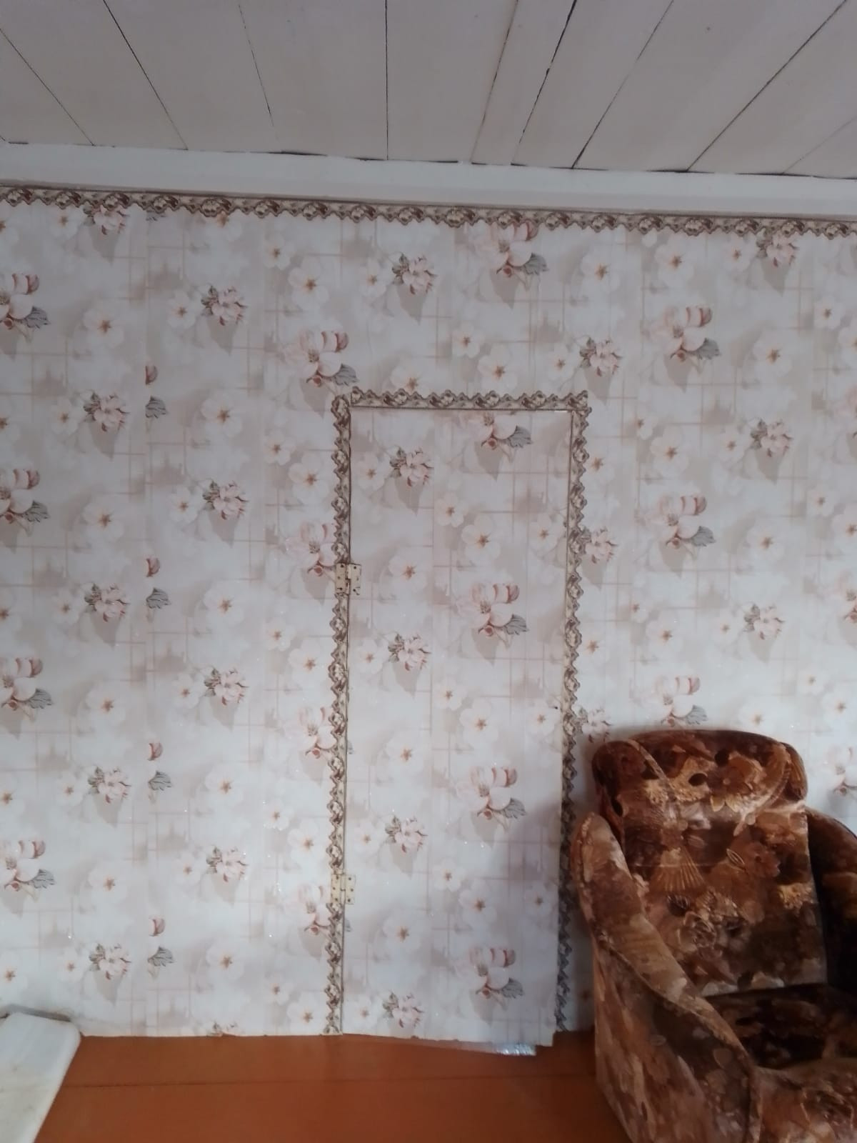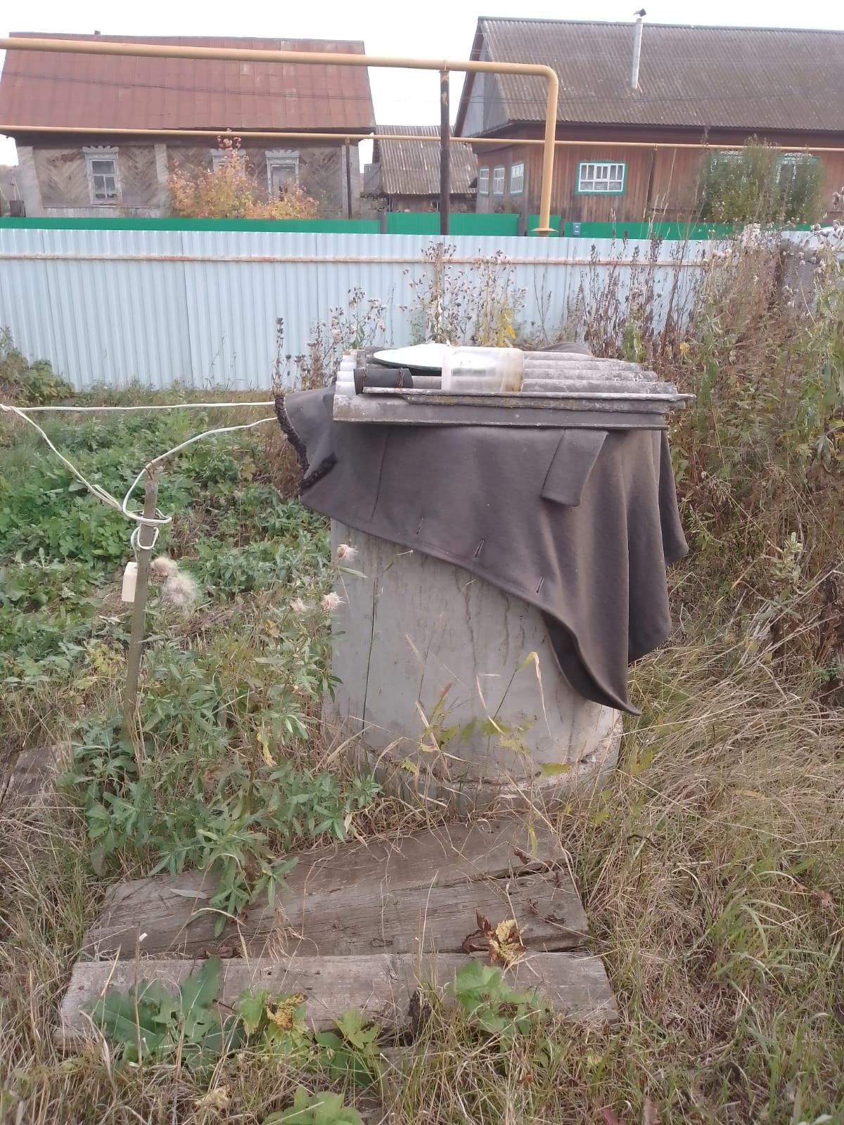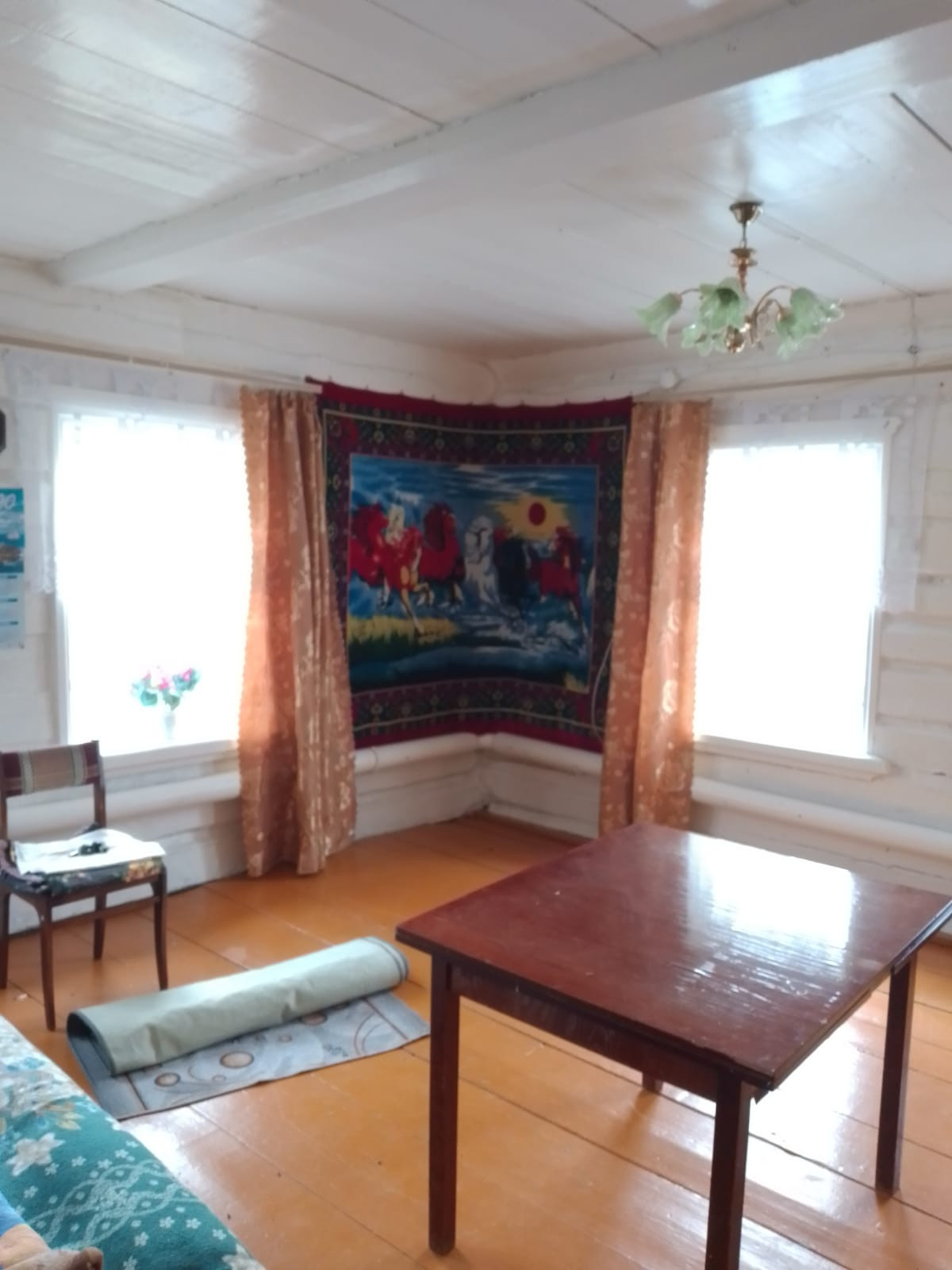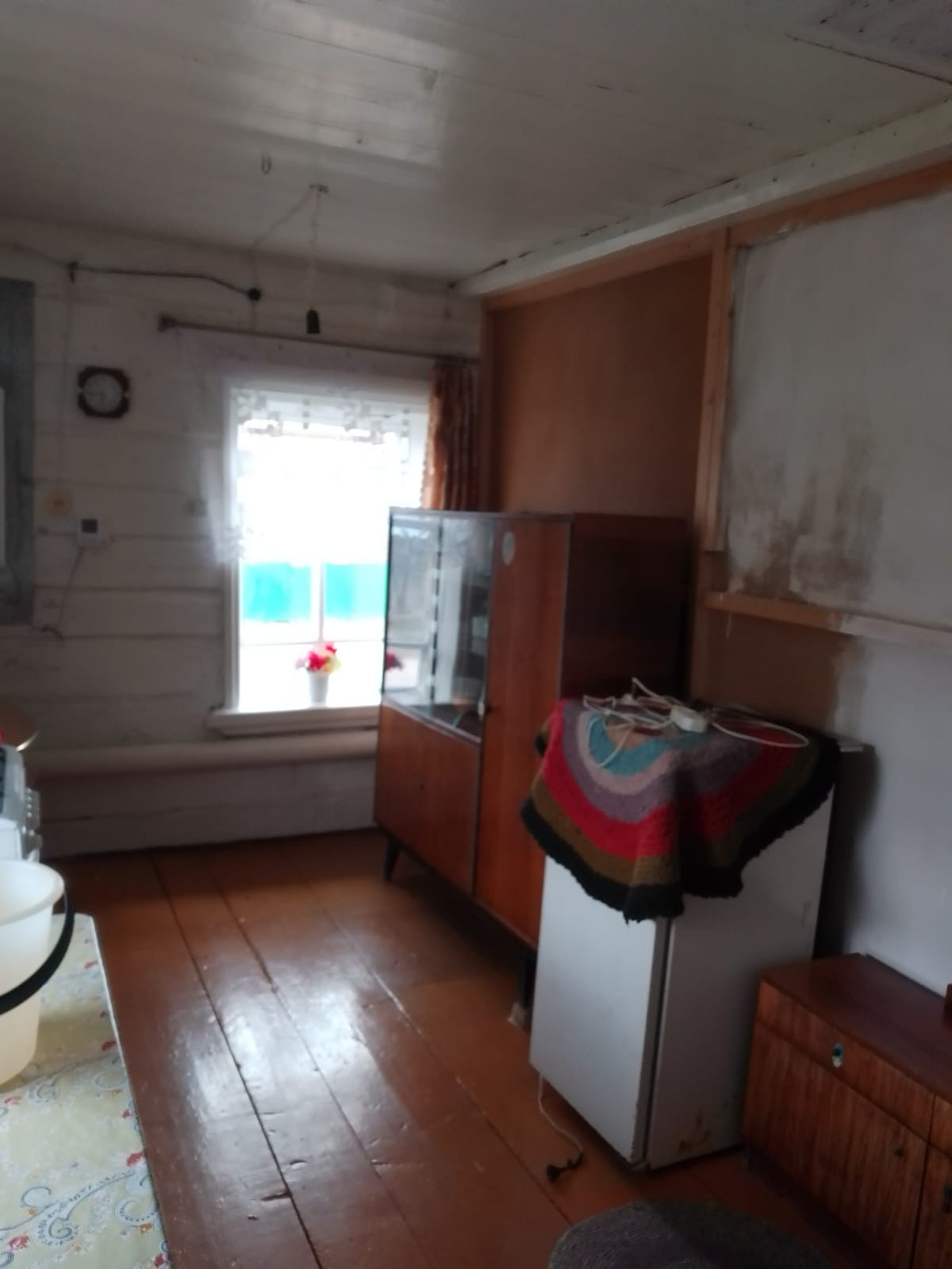 Дом обшит досками, кровля профнастил, забор и ворота из прфлиста, рама окон деревянные.