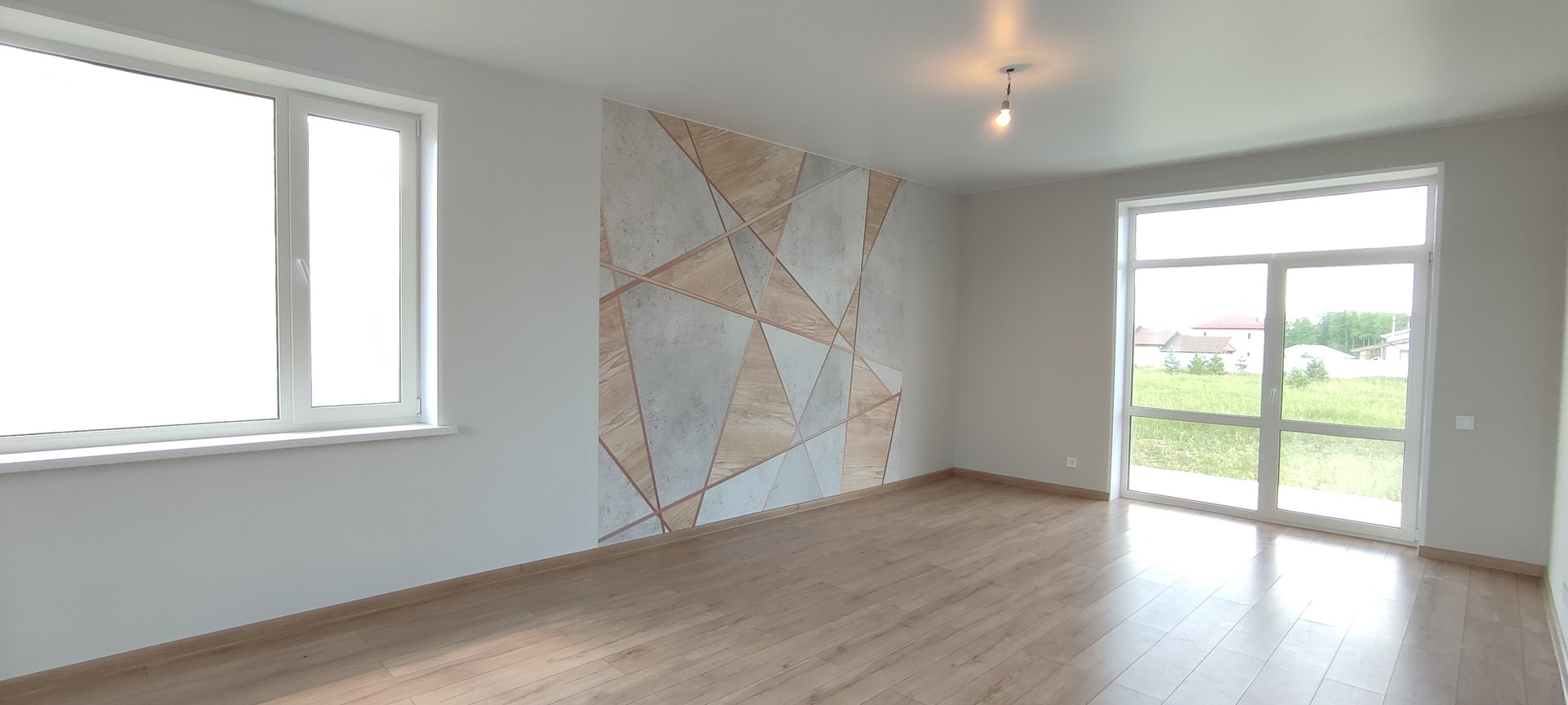 - Входная дверь и выход на террасу с панорамным остеклением