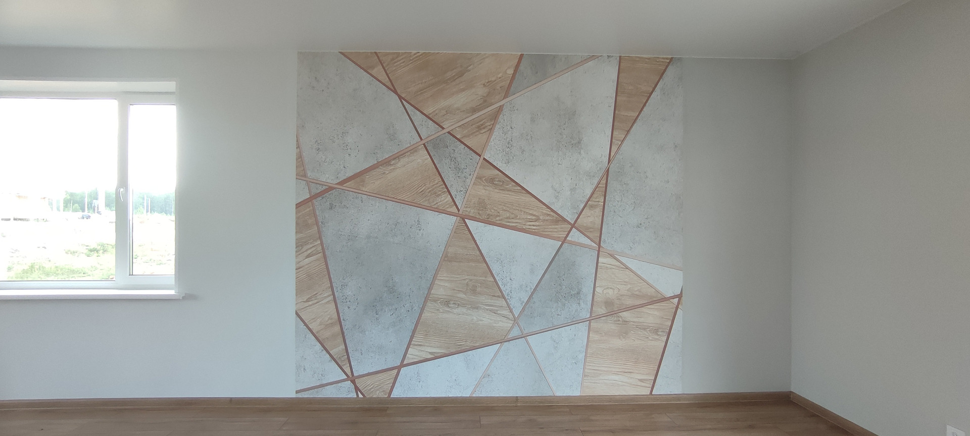 - Обои, на полу – ламинат и керамогранит