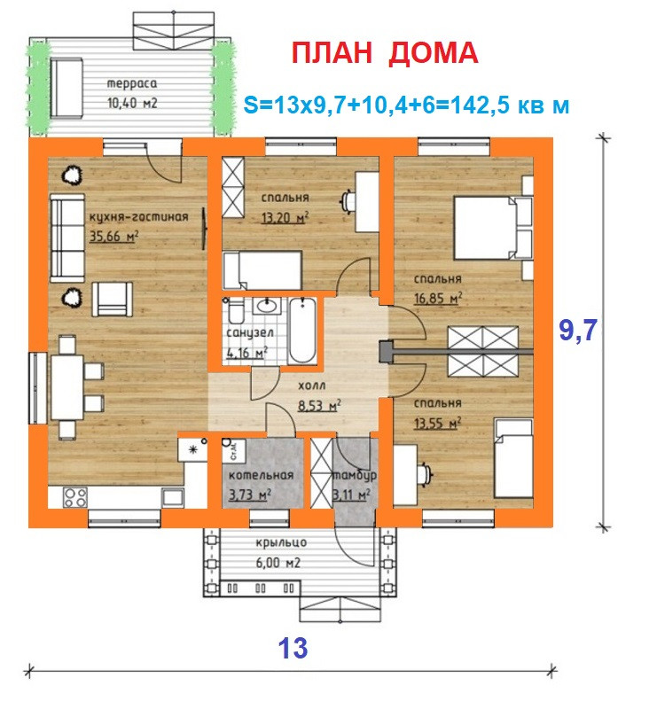 Общая площадь 142 м2