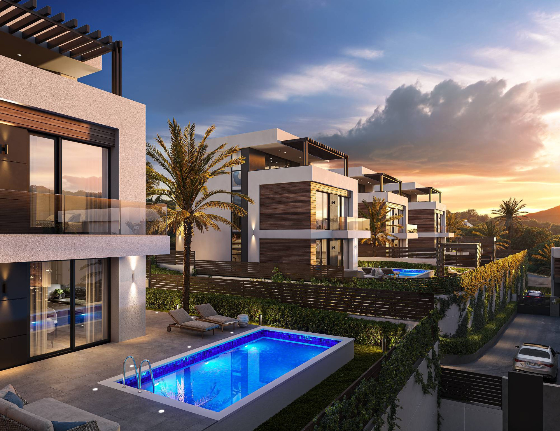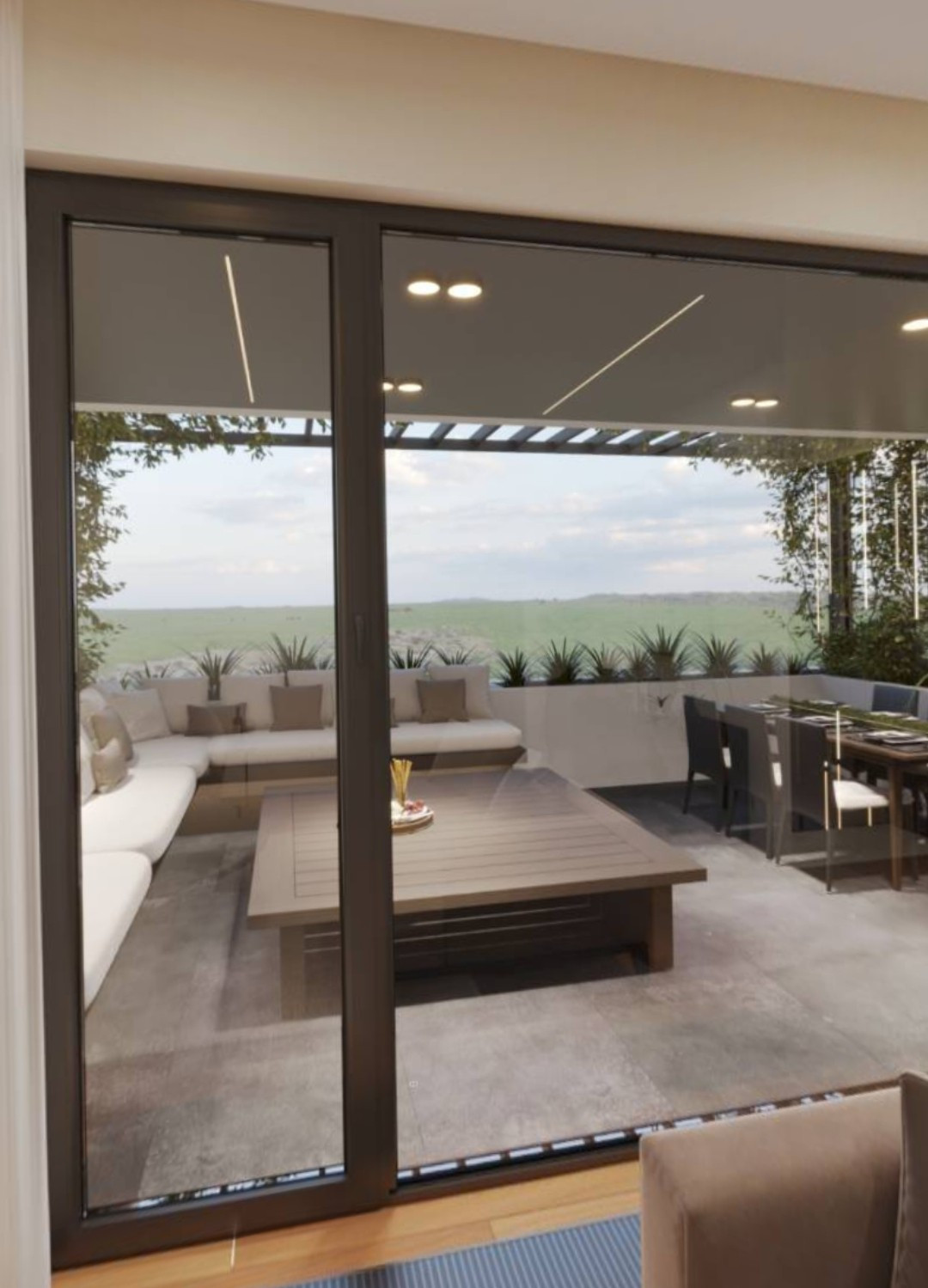 Большие терассы с прекрасными видами на горы.