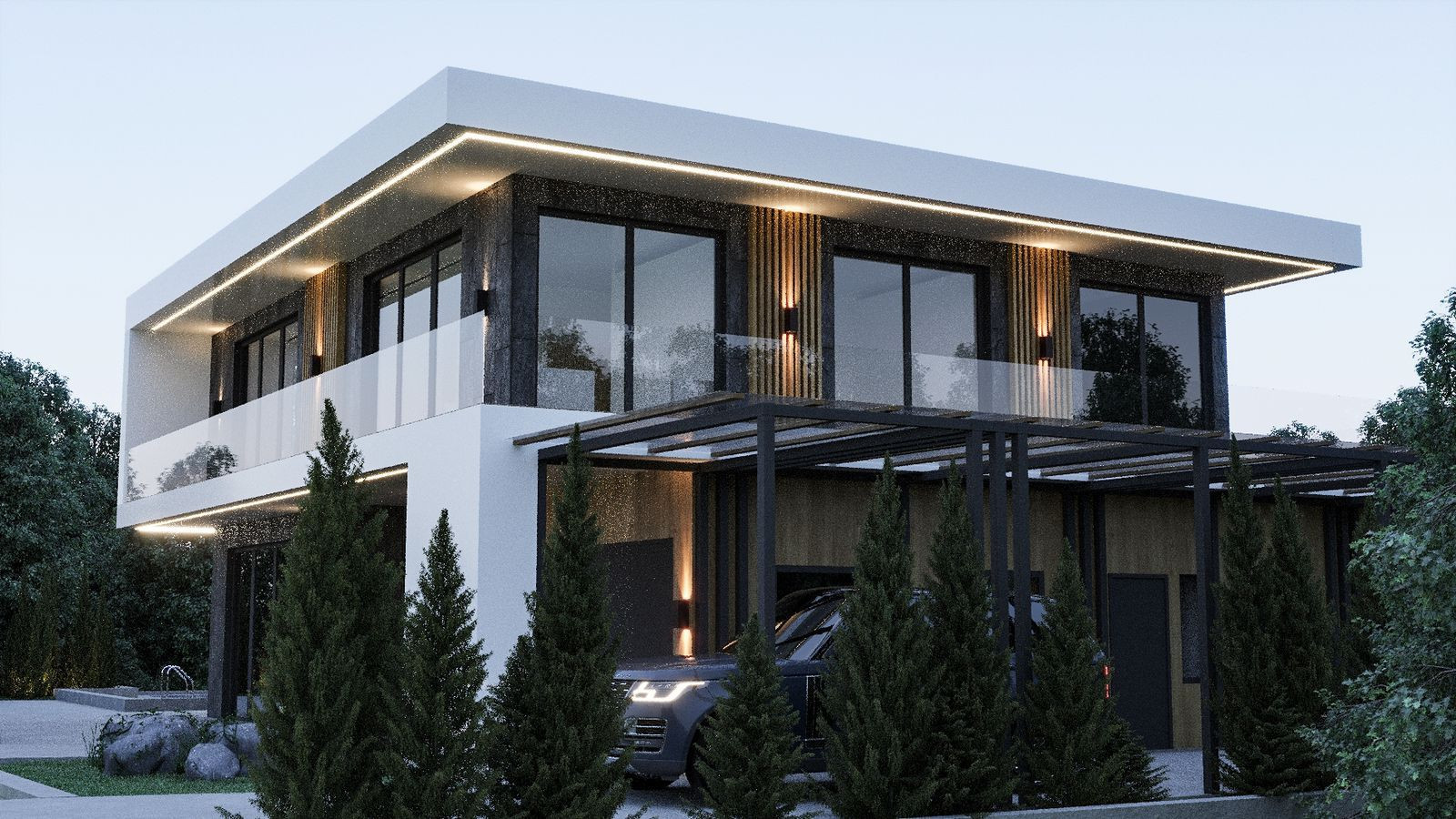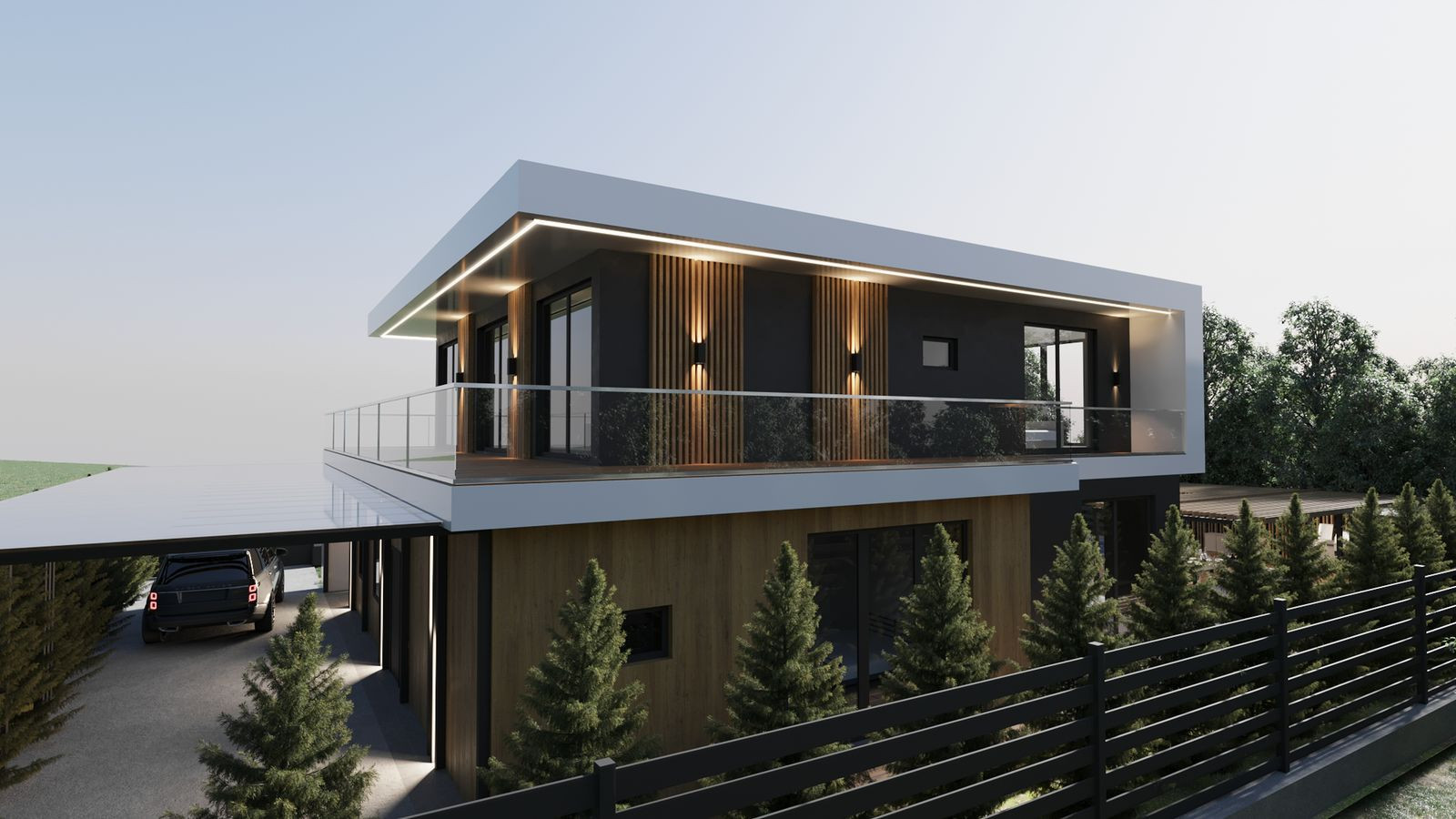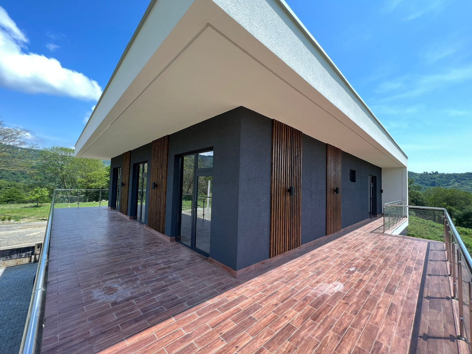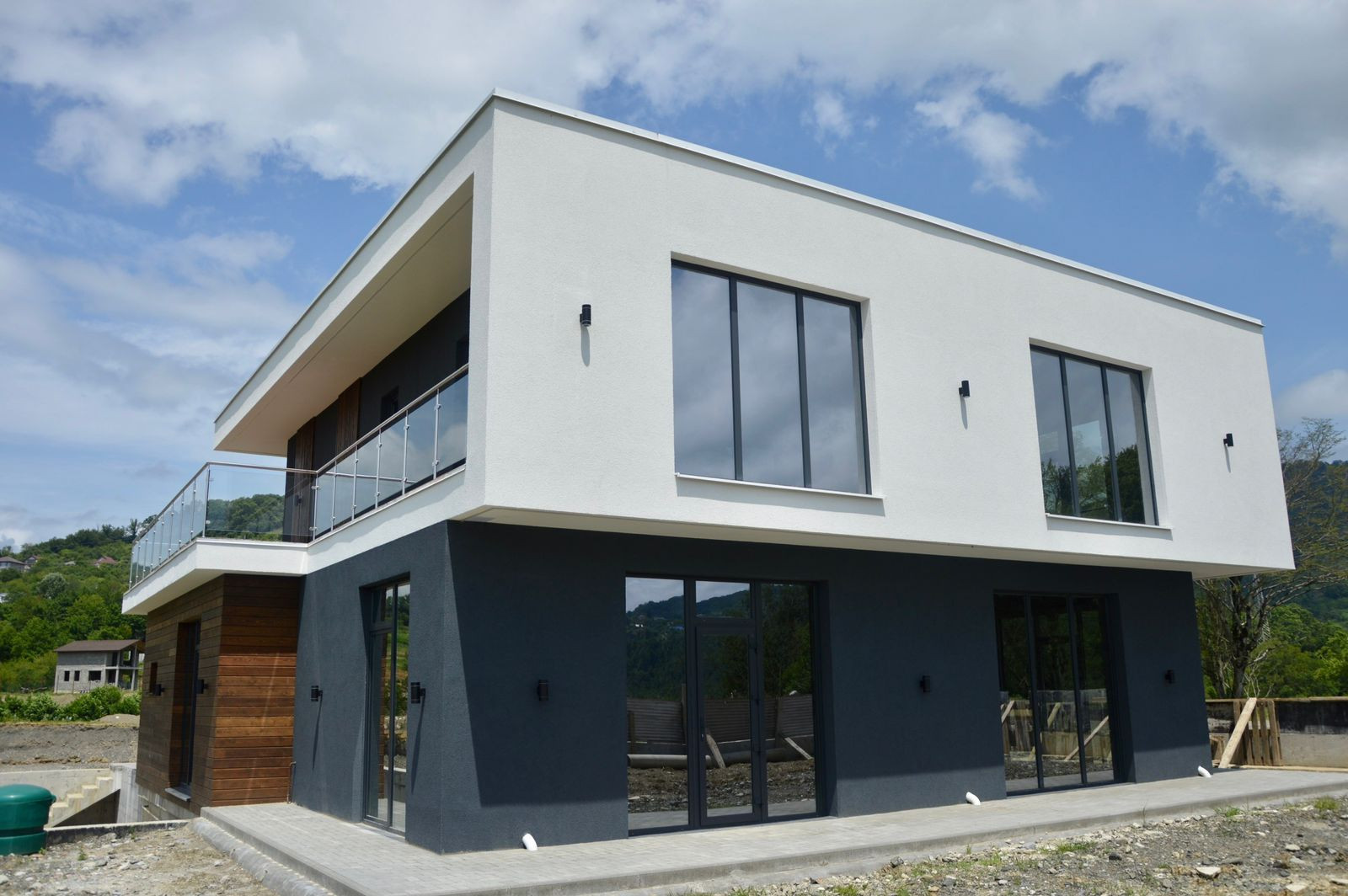 ✔️ Фасад декоративная штукатурка и планкен, фасадное освещение