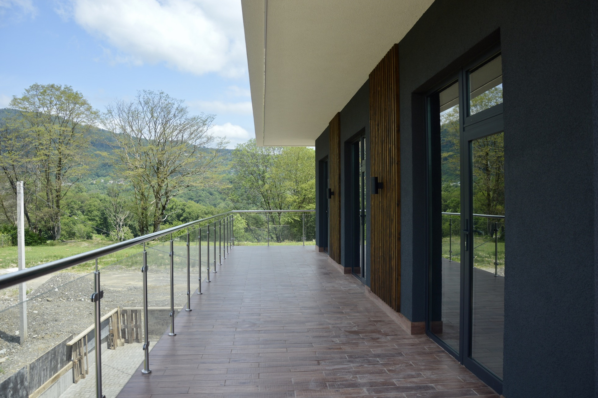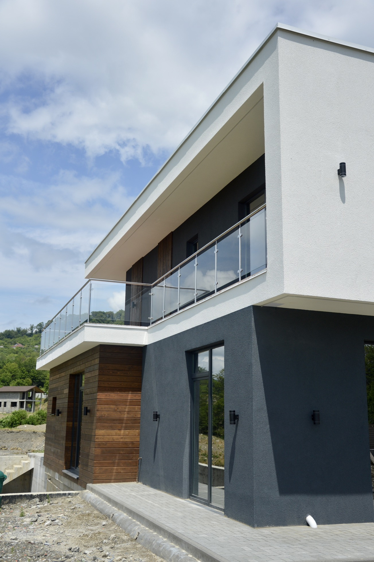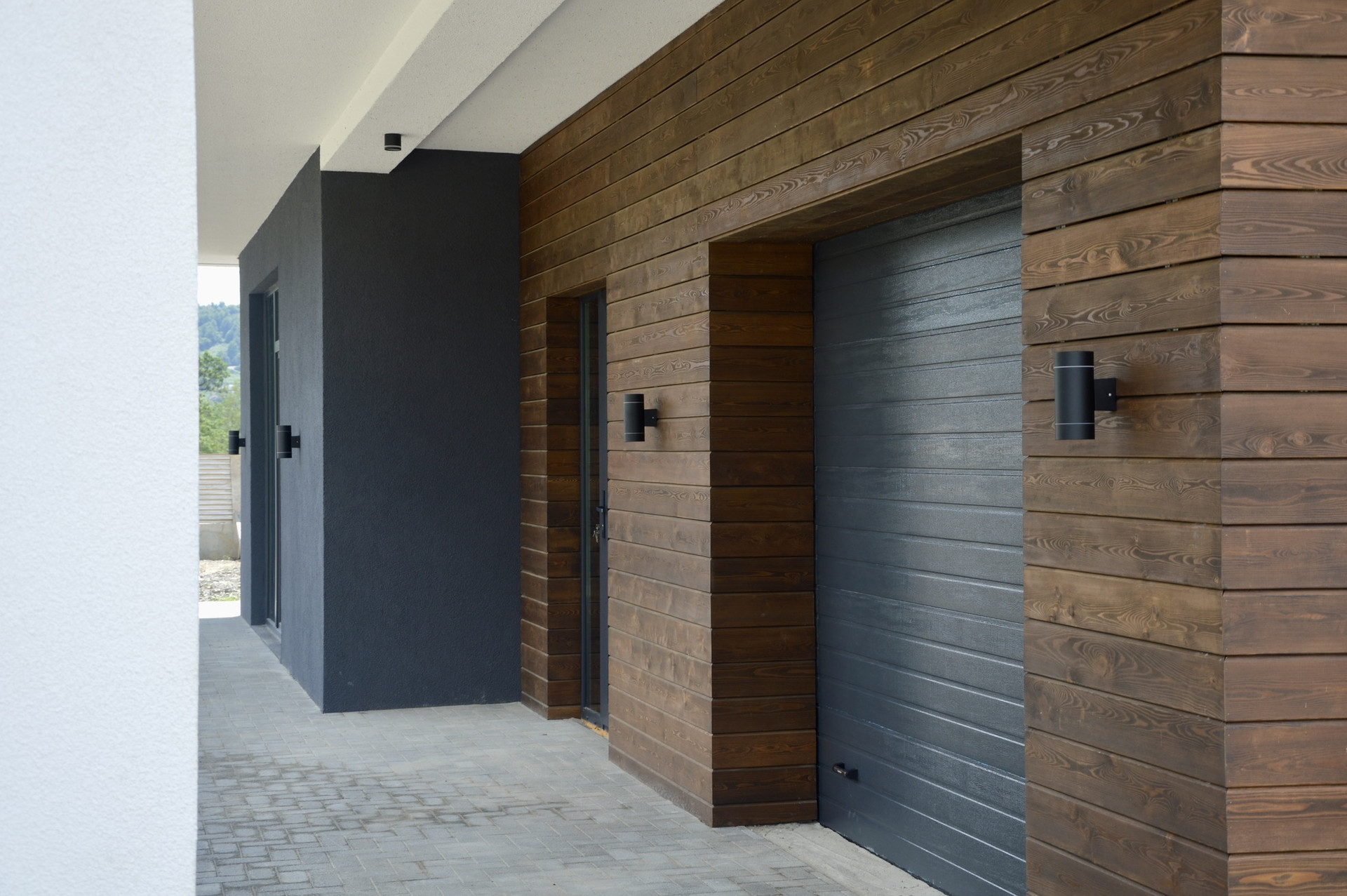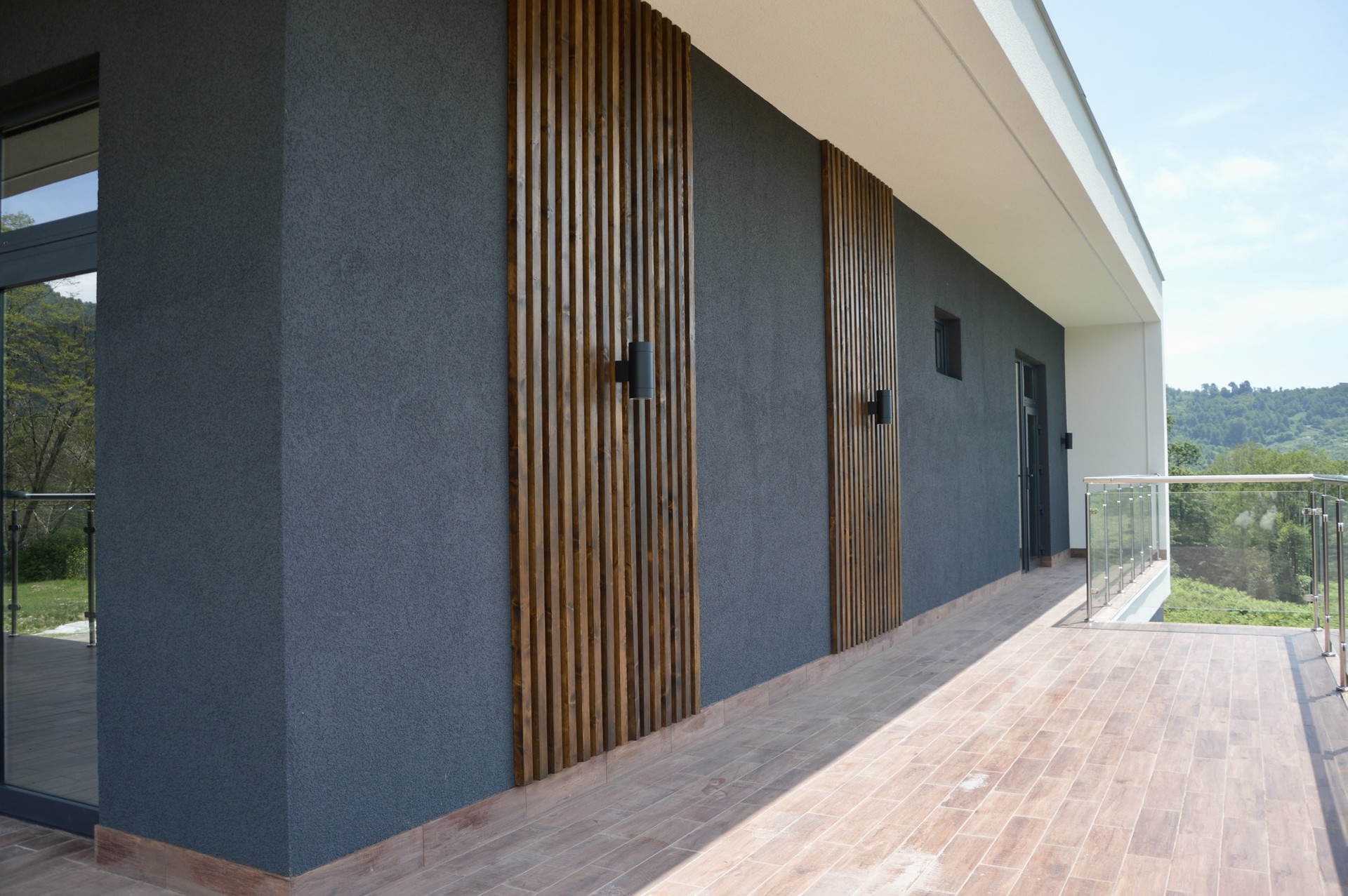 ✔️ Фасад декоративная штукатурка и планкен, фасадное освещение