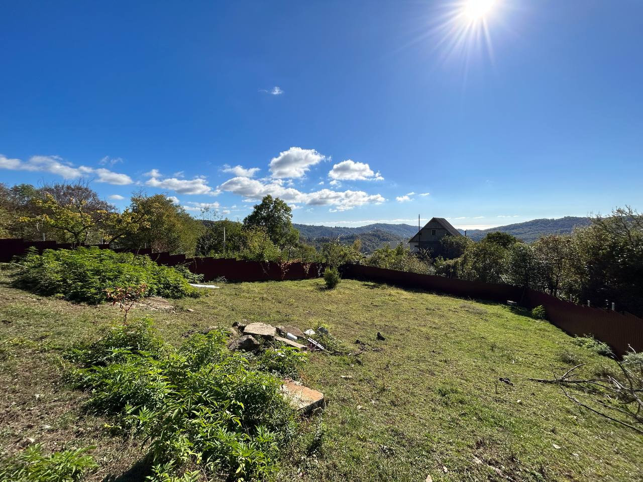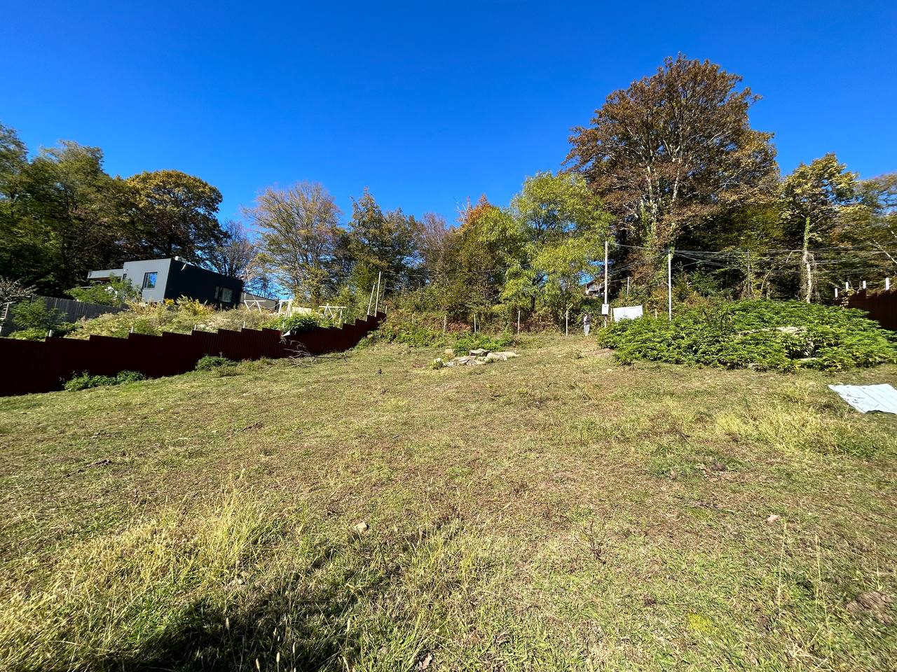 Участок с видом на море, подготовлен под строительство, огорожен, на участок заведено электричество, по границе газ, вода-бурить скважину, до автобусной остановки 900 метров,