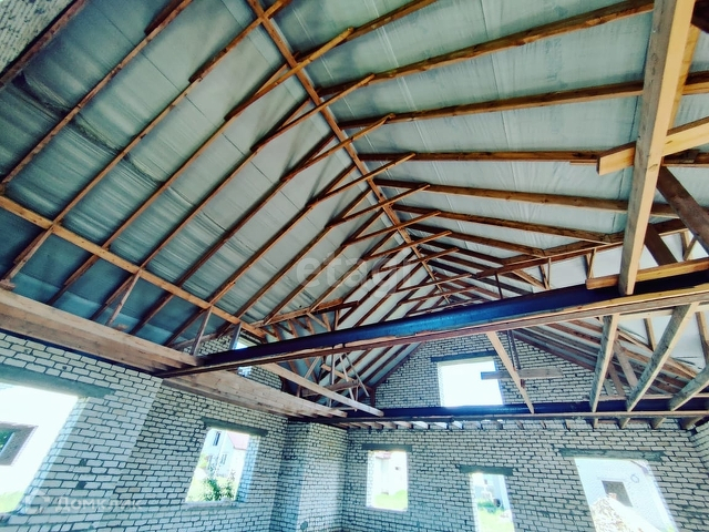 Крыша металлочерепица. Первый этаж 140 кв.м свободной планировки (планируйте как хотите, по своему желанию), мансарда 80 кв.м., так же без межкомнатных перегородок.