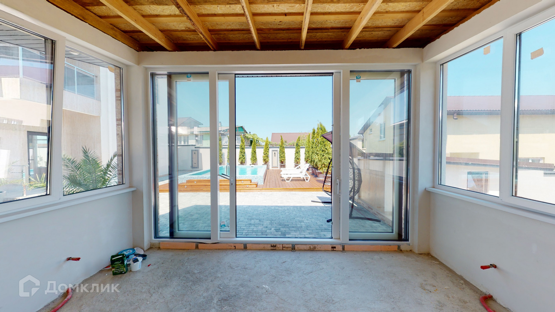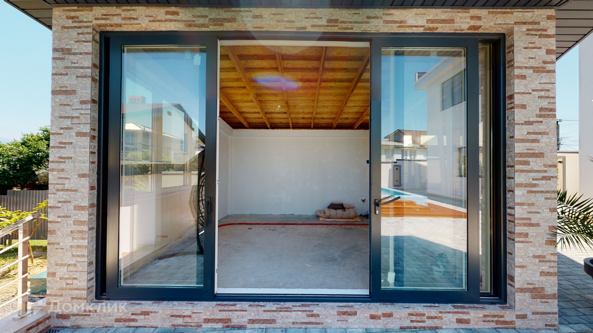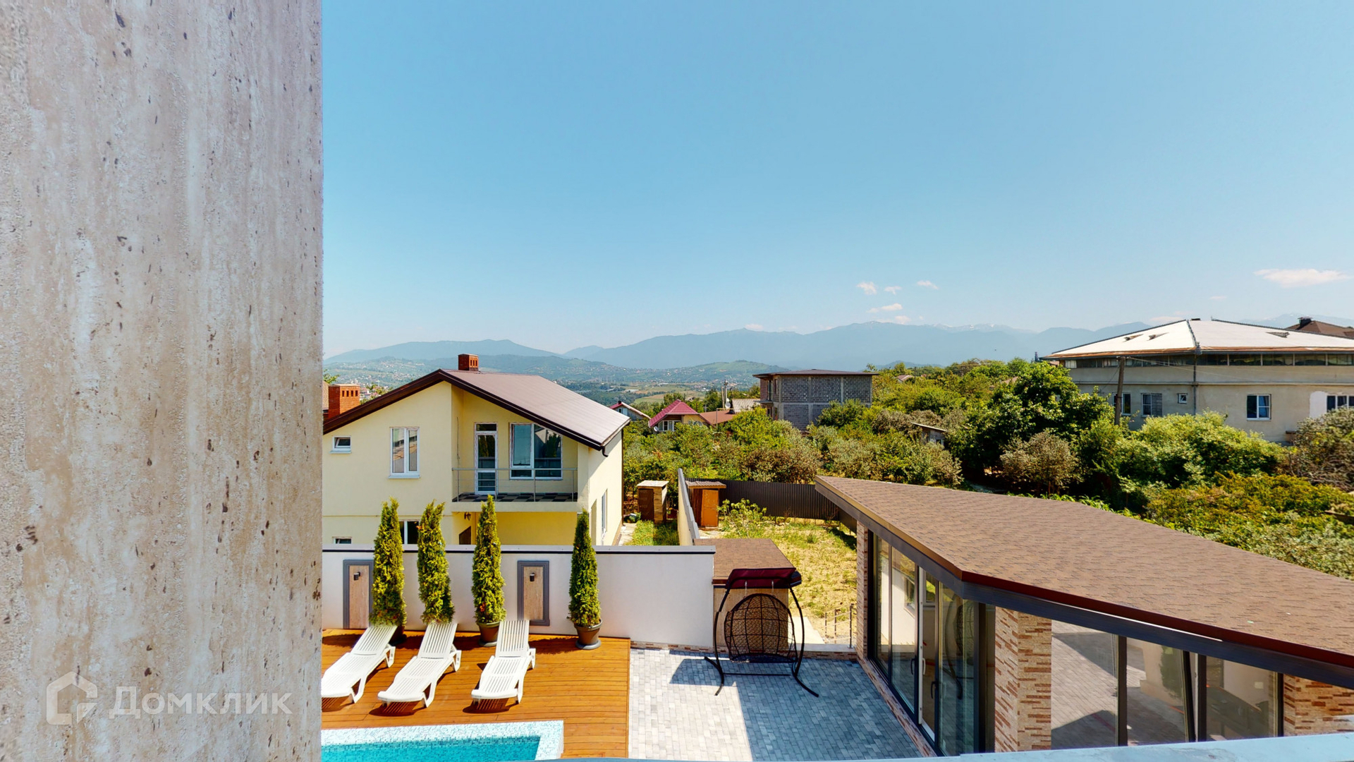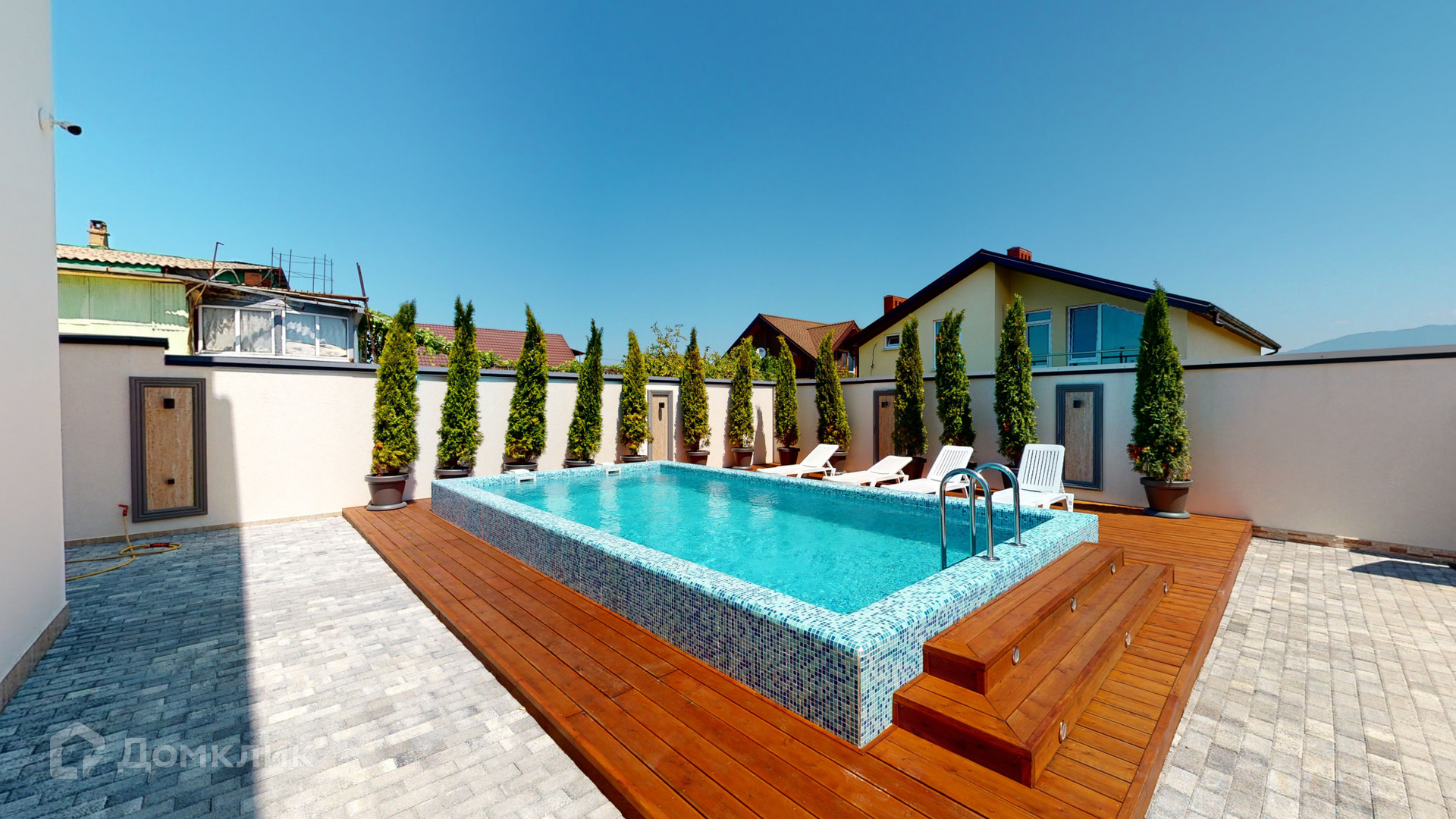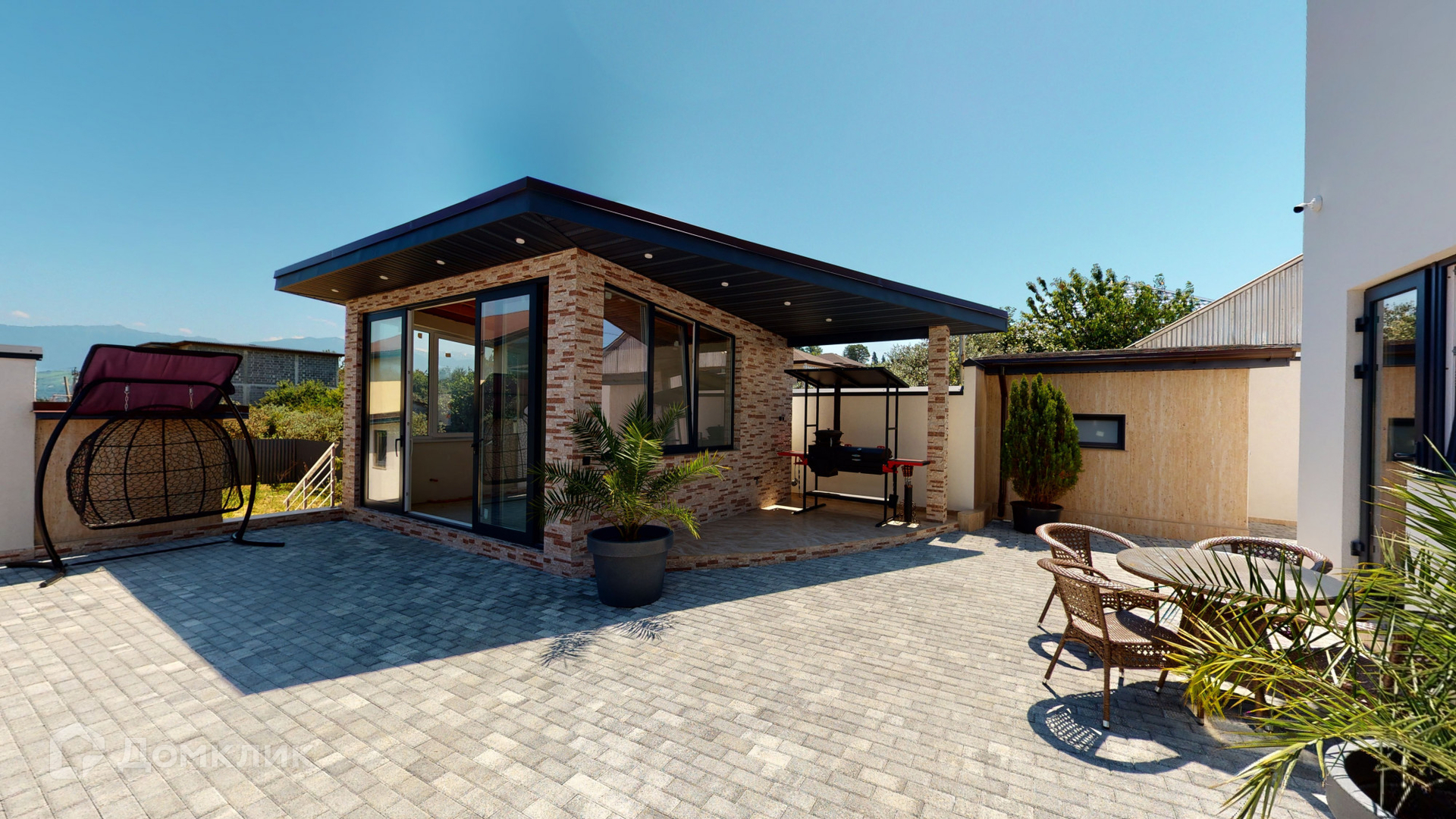 Отделка дома была выполнена из качественных материалов, на большой и закрытой территории возле дома выложена брусчатая дорожка, сделано ландшафтное озеленение, на заднем дворе имеются большой бассейн, зона барбекю и закрытая беседка для комфортного отдыха, парковочное место на 2-3 машины и асфальтный подъезд прямо к воротам.