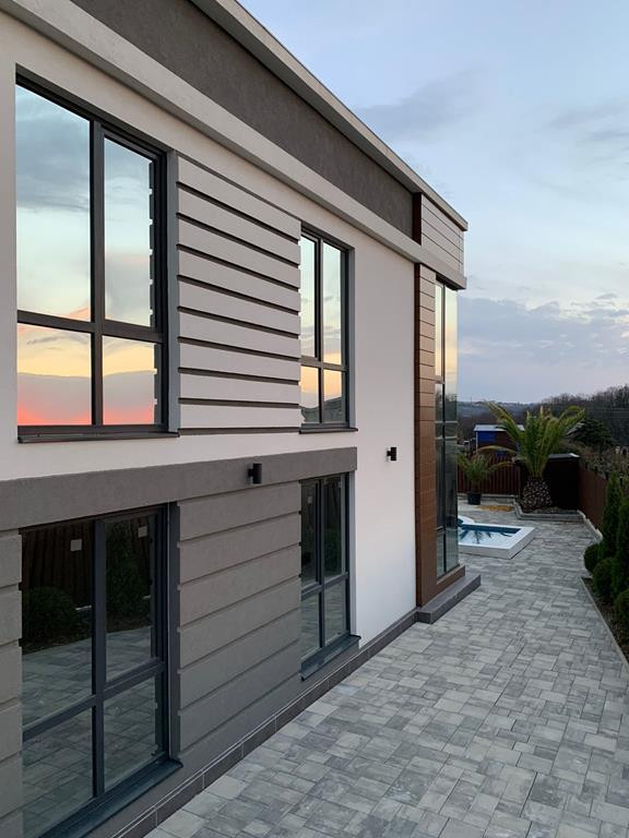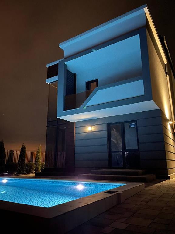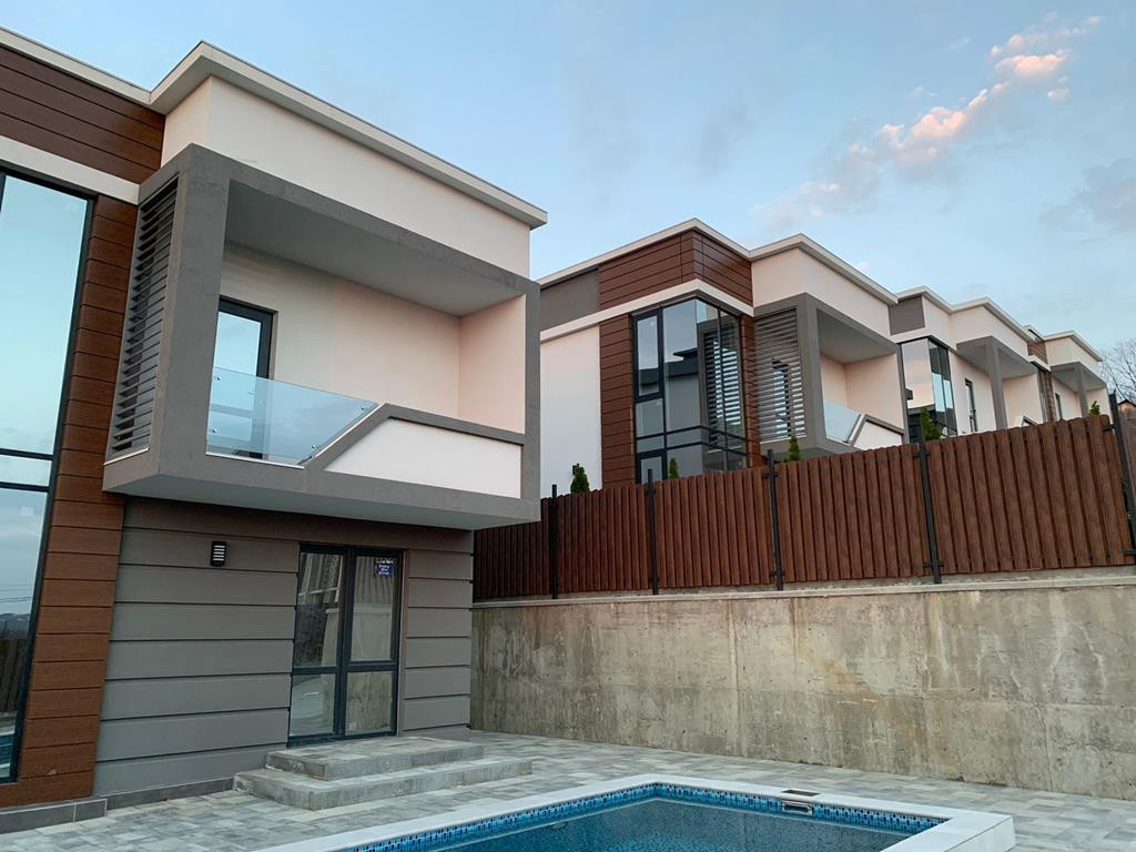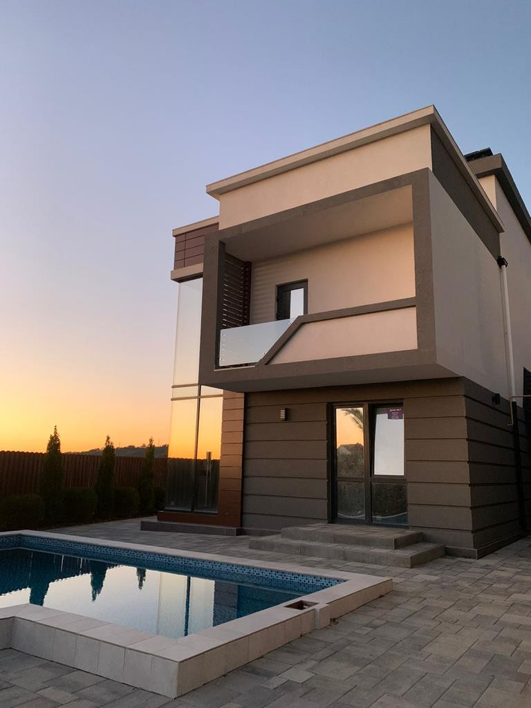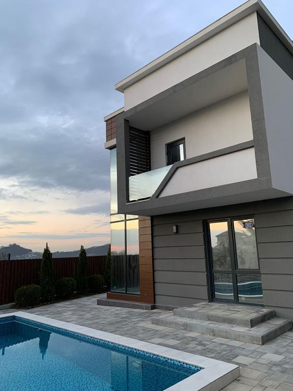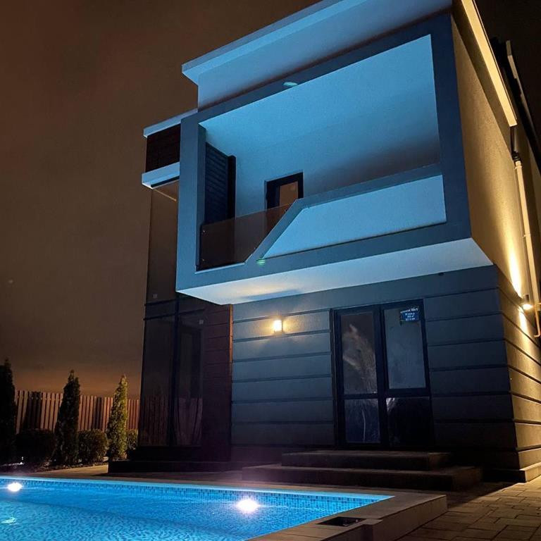 Двухэтажный дом с бассейном.