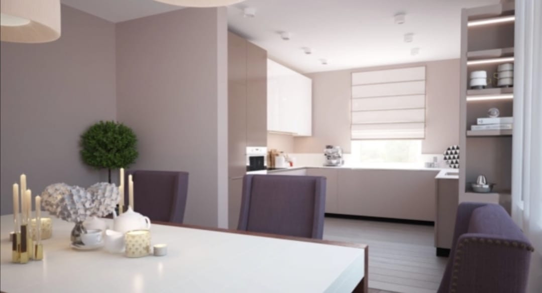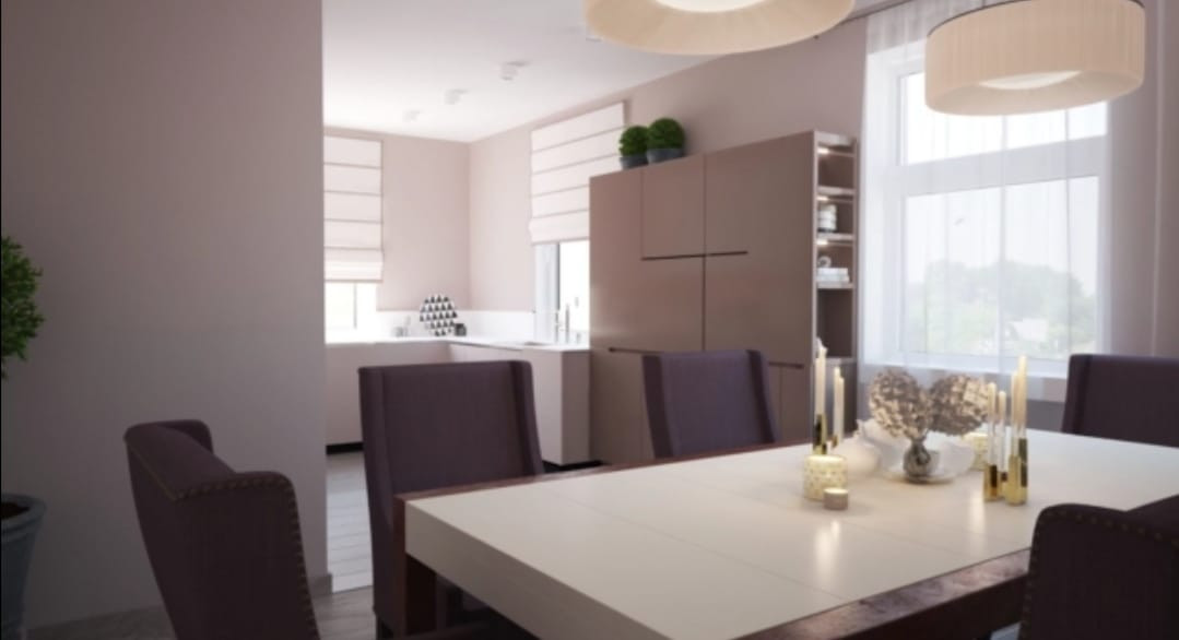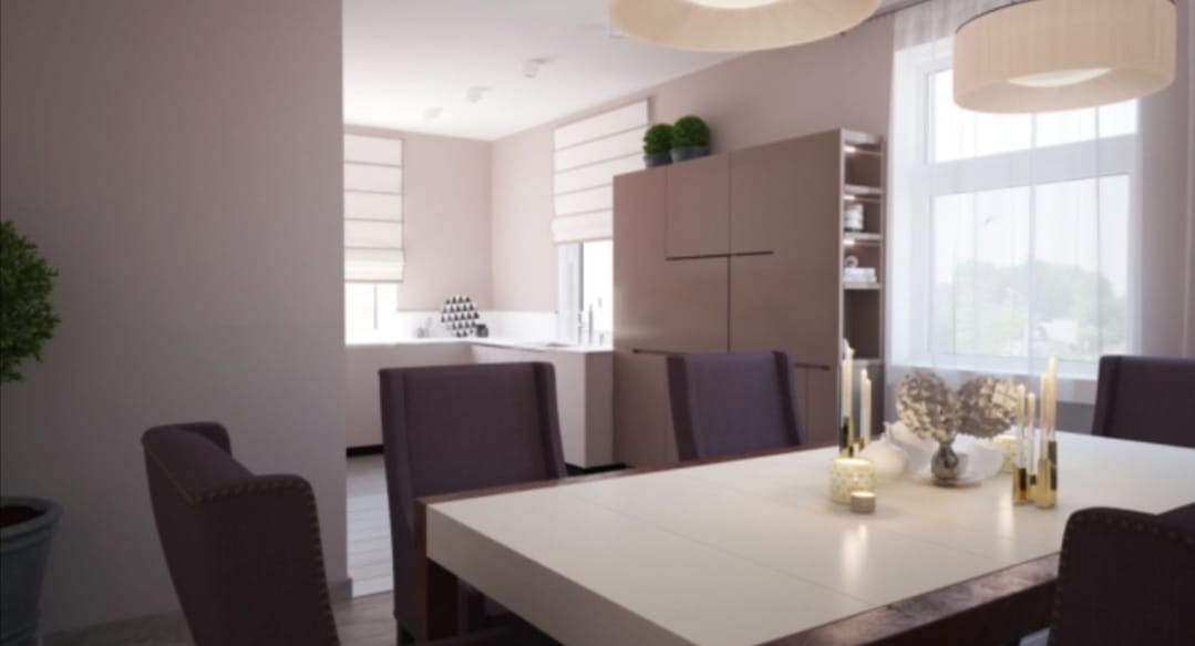 Первый этаж кухня столовая, гостиная, санузел.