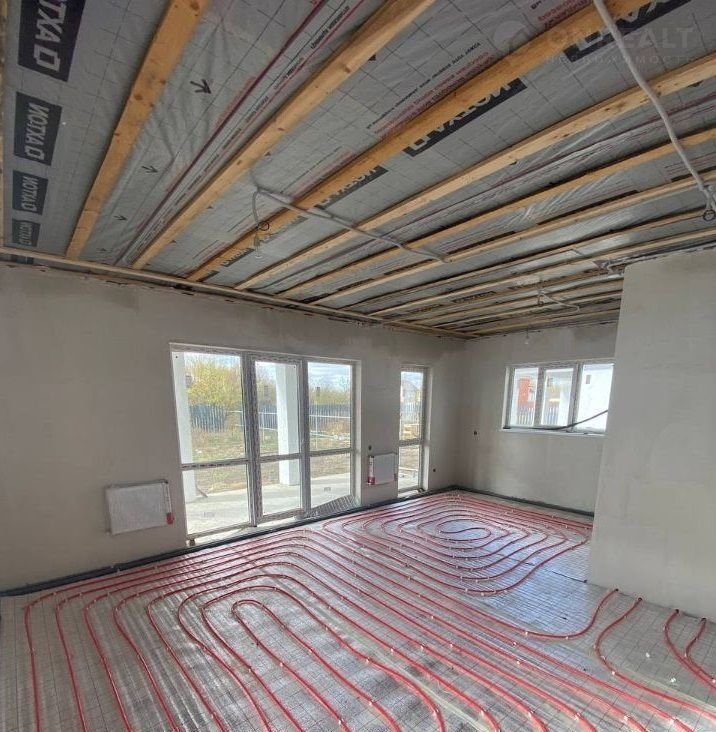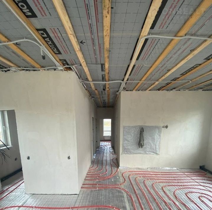 Предчистовая отделка (будет стяжка пола). Дом из блока, снаружи покрыт короедом. Личный септик. Терраса выходит на задний двор. Отопление электрическое, теплые полы по всему дому, утепленная крыша.