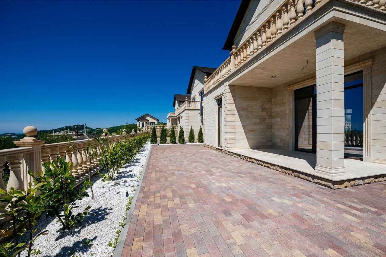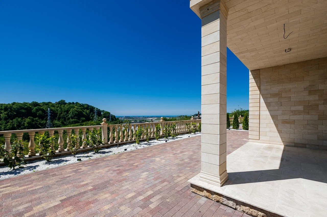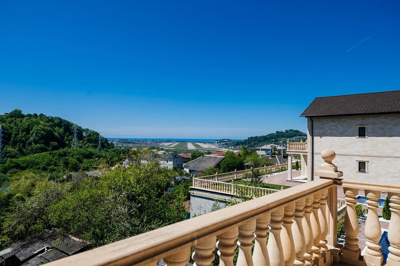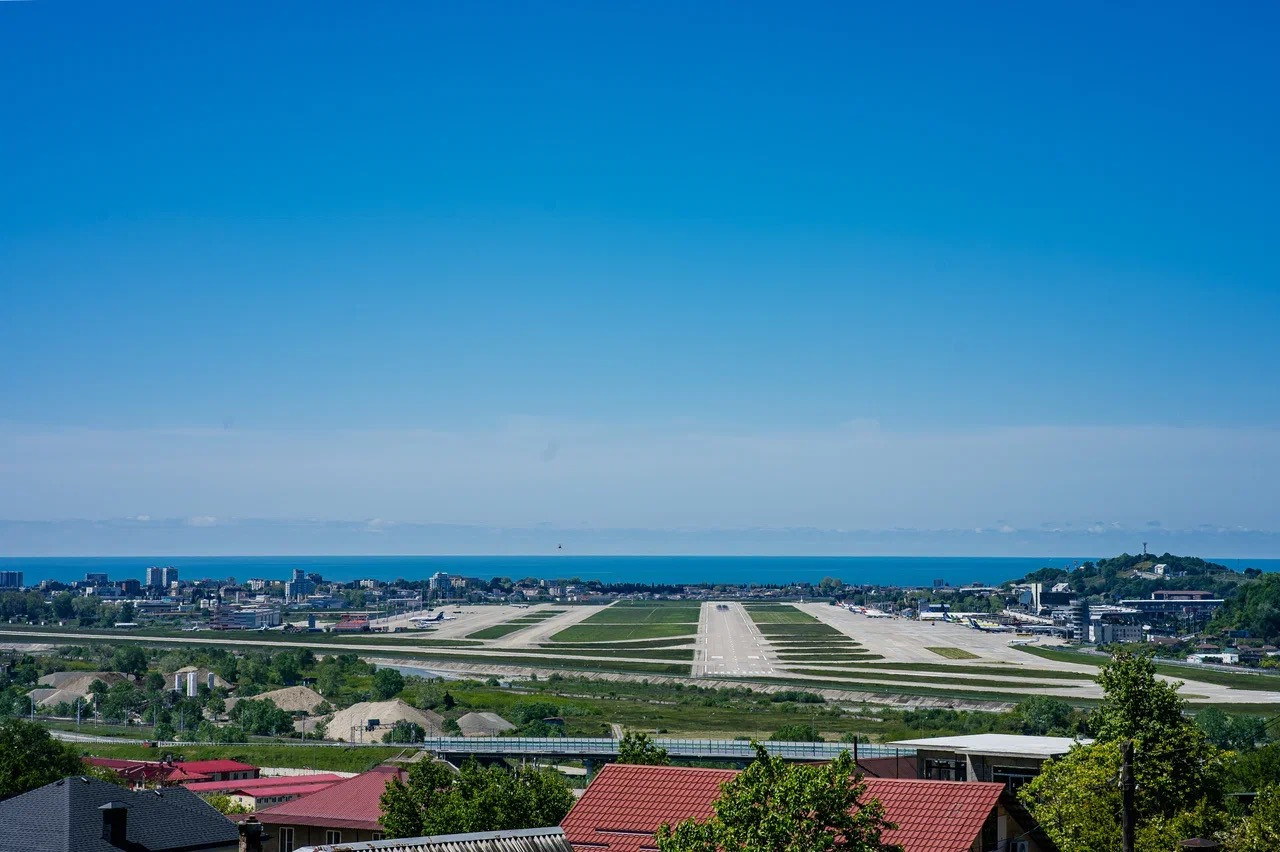 Вид на море и взлетно-посадочную полосу аэропорта Сочи открывается как из дома так и с самого участка. Шикарные видовые характеристики и статусные соседи.