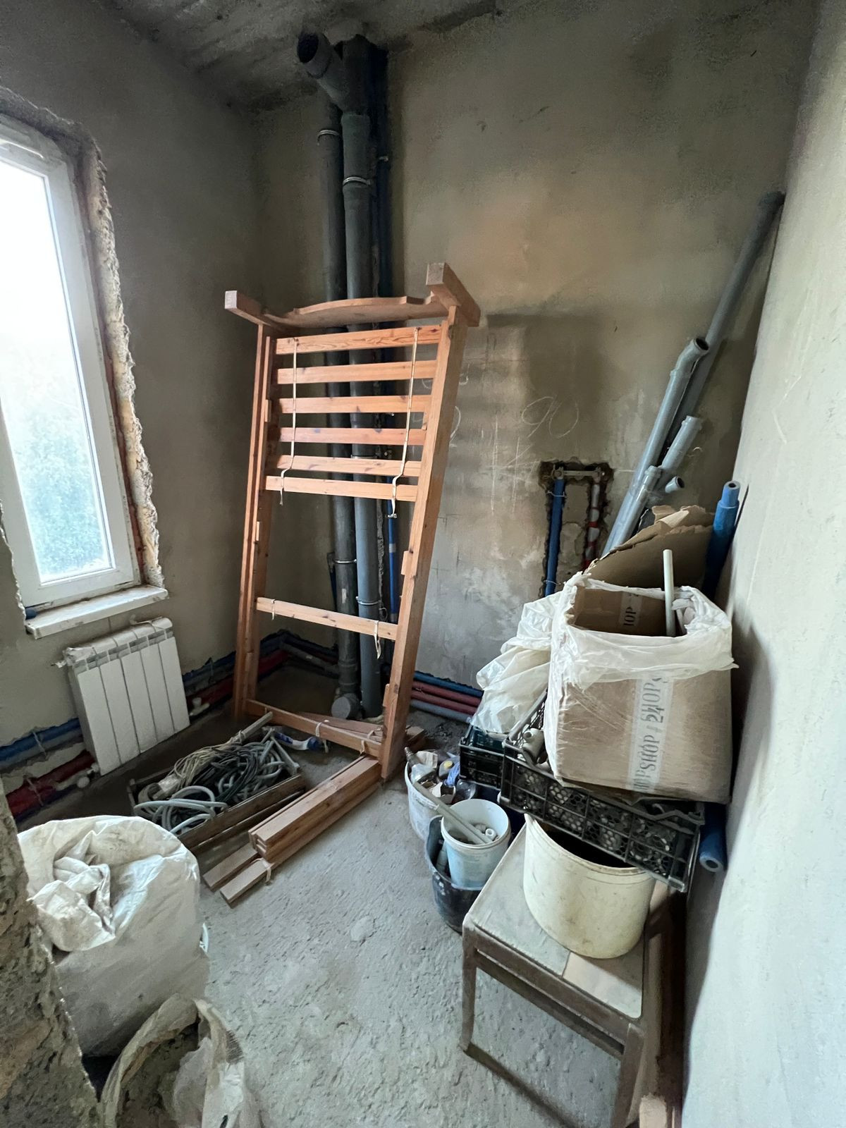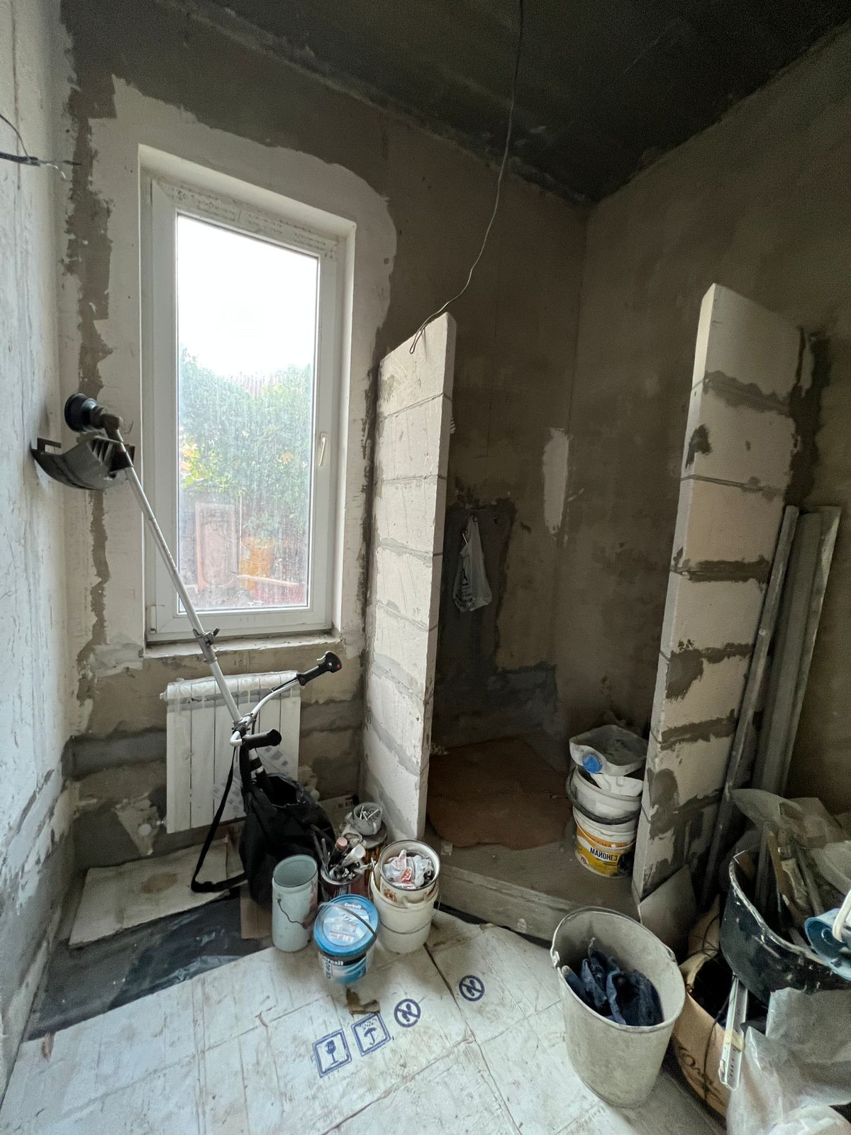 Внутри дома часть помещений оштукатурены, на первом этаже выложена плитка. В дом заведены электричество и газ, разведены батареи отопления на два этажа, установлено газовое оборудование, бойлер водонагреватель, всё работает, всё новое, в доме никто не жил. Водоснабжение центральное, канализация новый септик во дворе. Установлены два кондиционера. Отделка и выбор дизайнерского решения остаётся за новым собственником. Всё брахло вывезем (личные вещи), строительные материалы если надо - оставим.