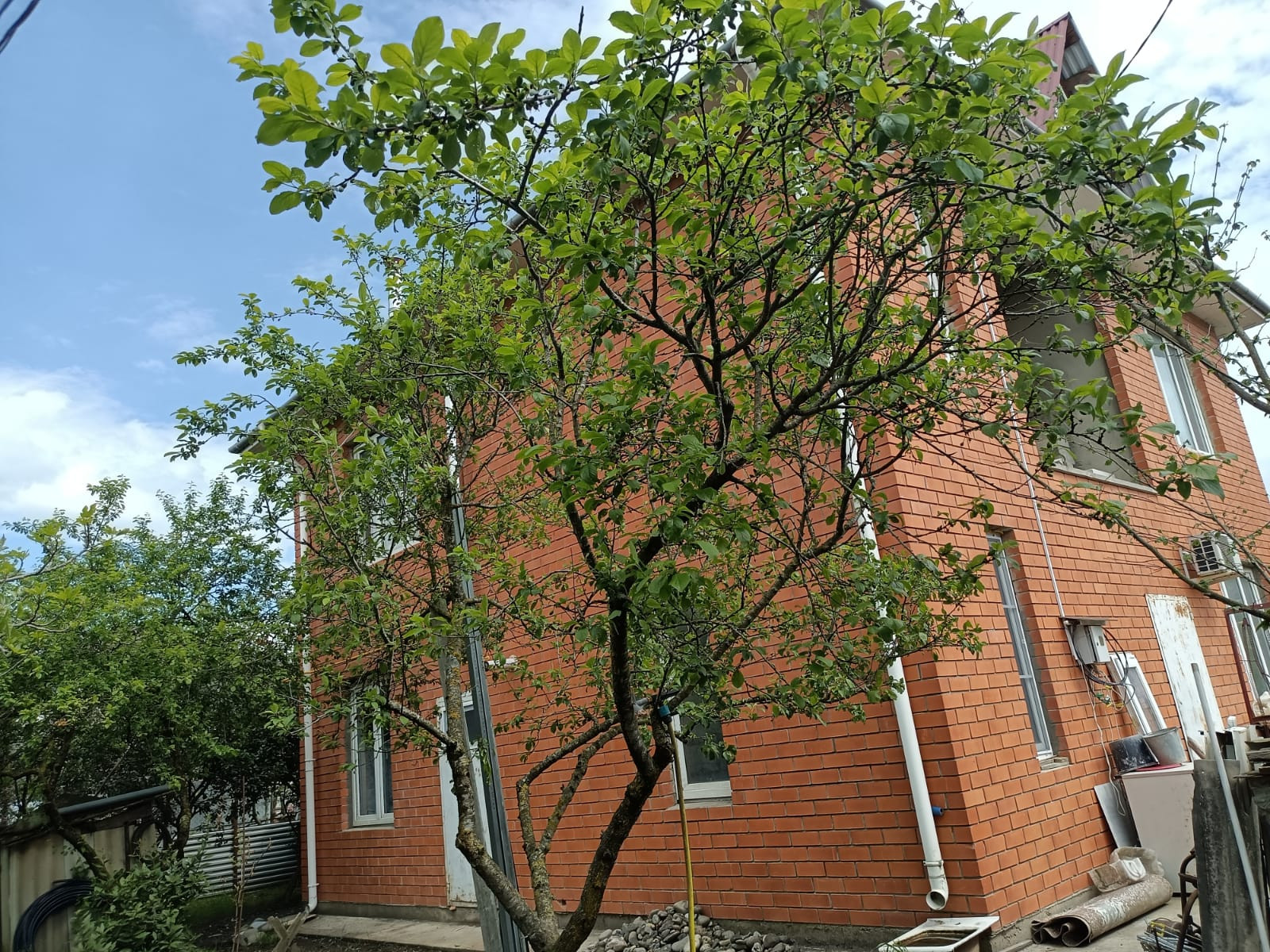 На участке высажены уже плодоносные фруктовые вечнозелёные деревья и кустарники с виноградником (Фейхоа, Хурма, Инжир, Алыча, Сливы, Облепиха, Рябина), Лавровое дерево, пальма.