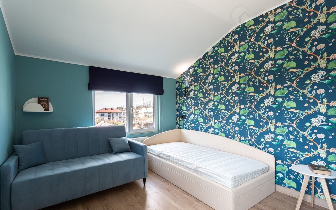 В доме четыре спальни (одна на первом этаже и три на втором), кухня-гостиная и два санузла (по одному на каждом этаже).
