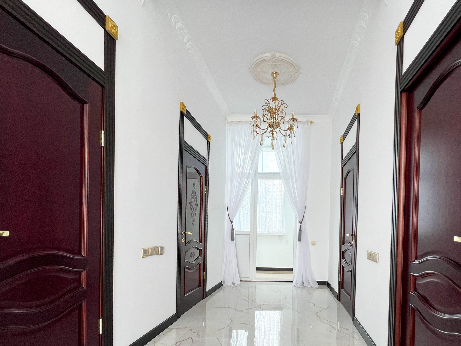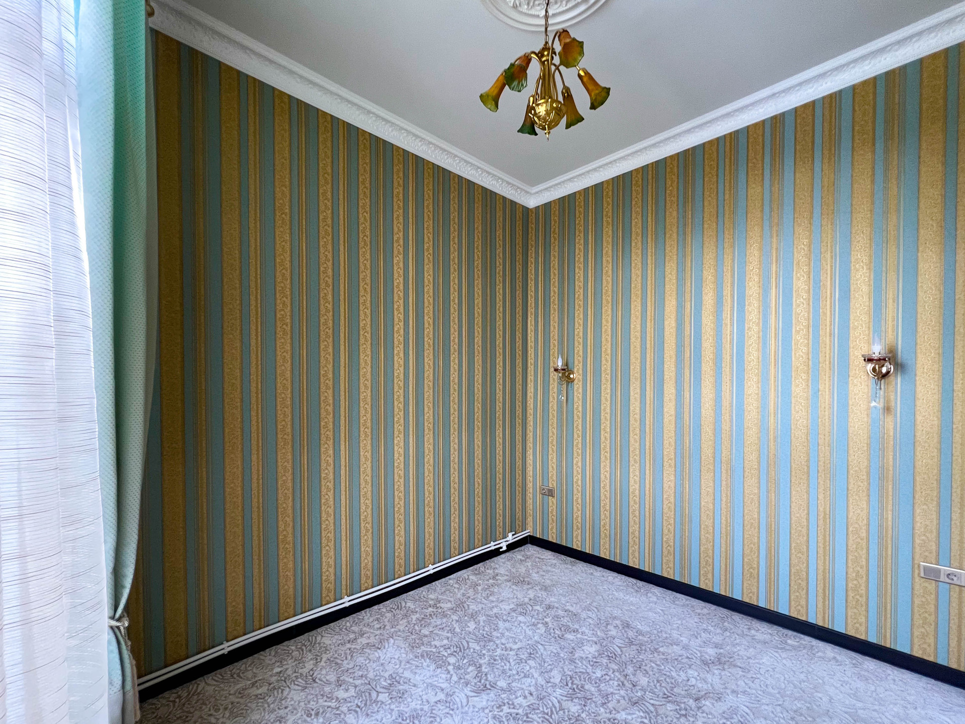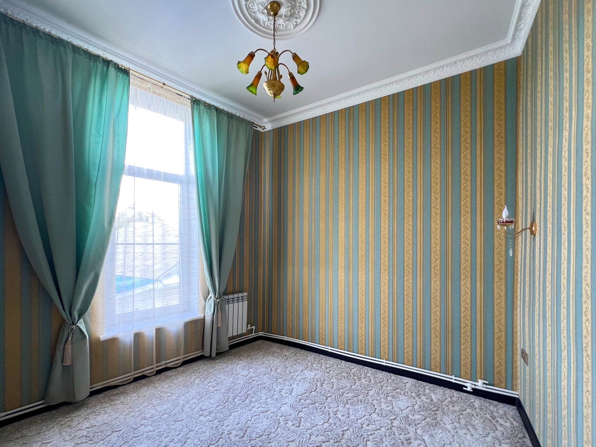 Витражные окна, высота потолков - 3,3 м.