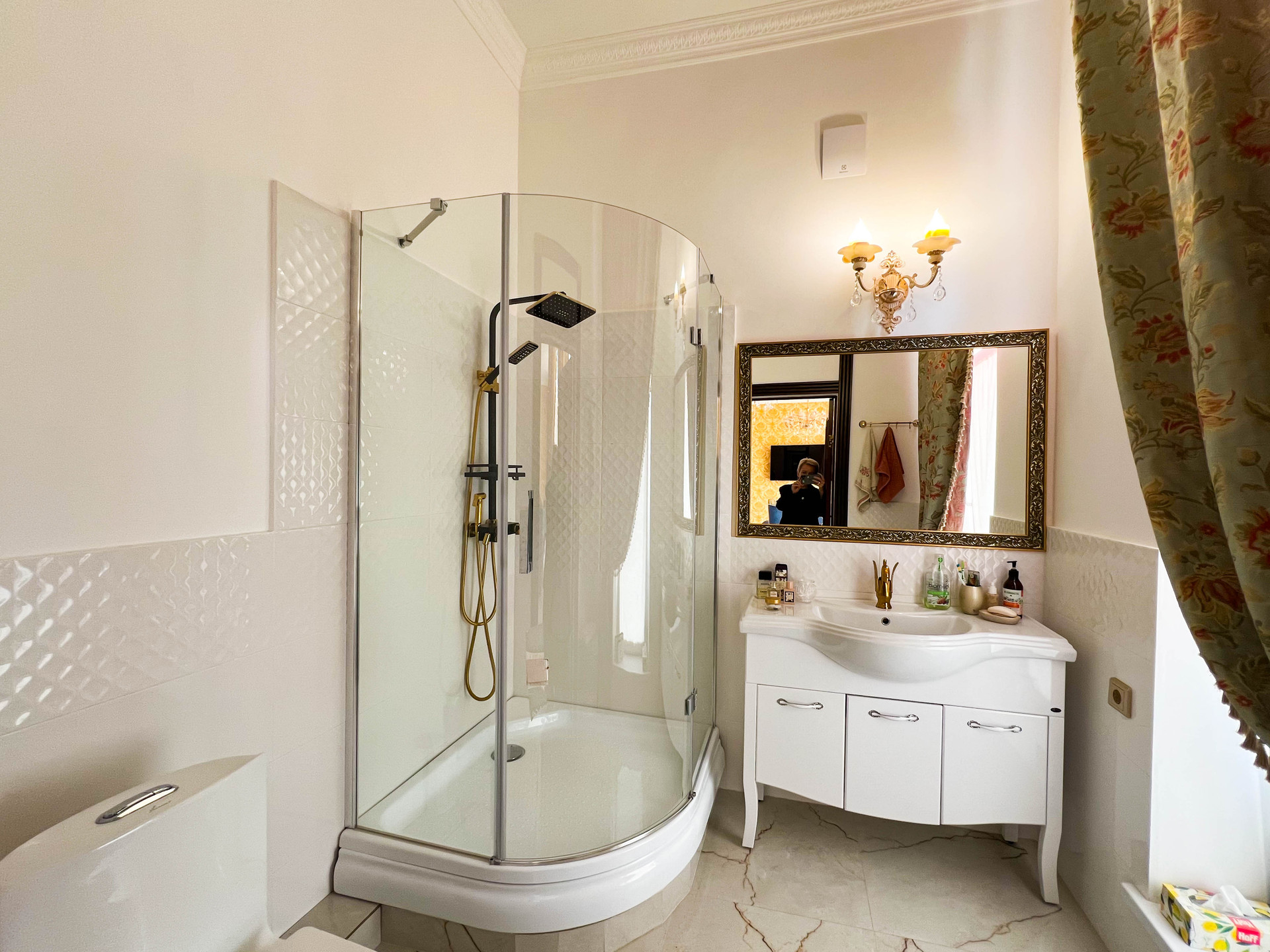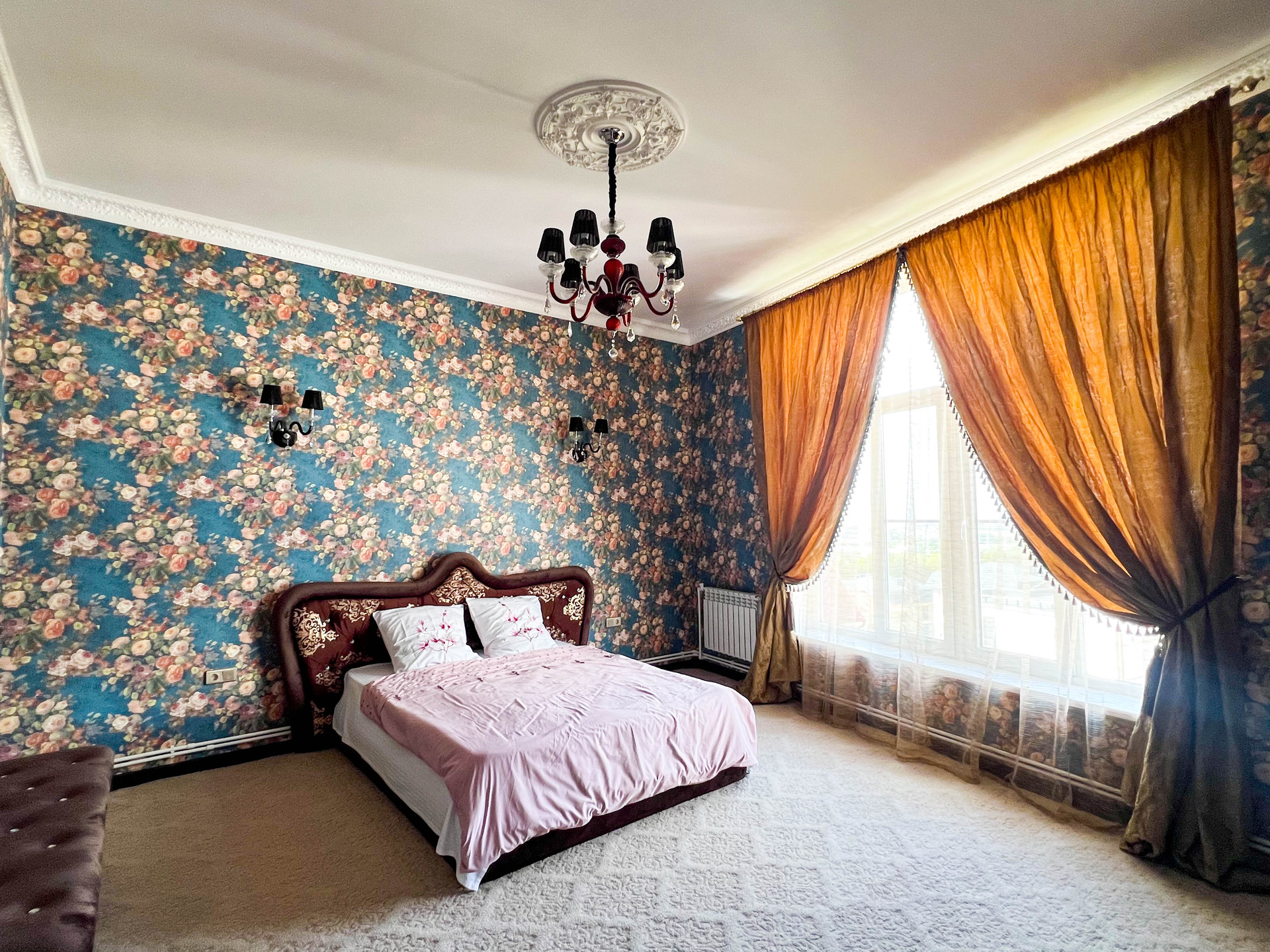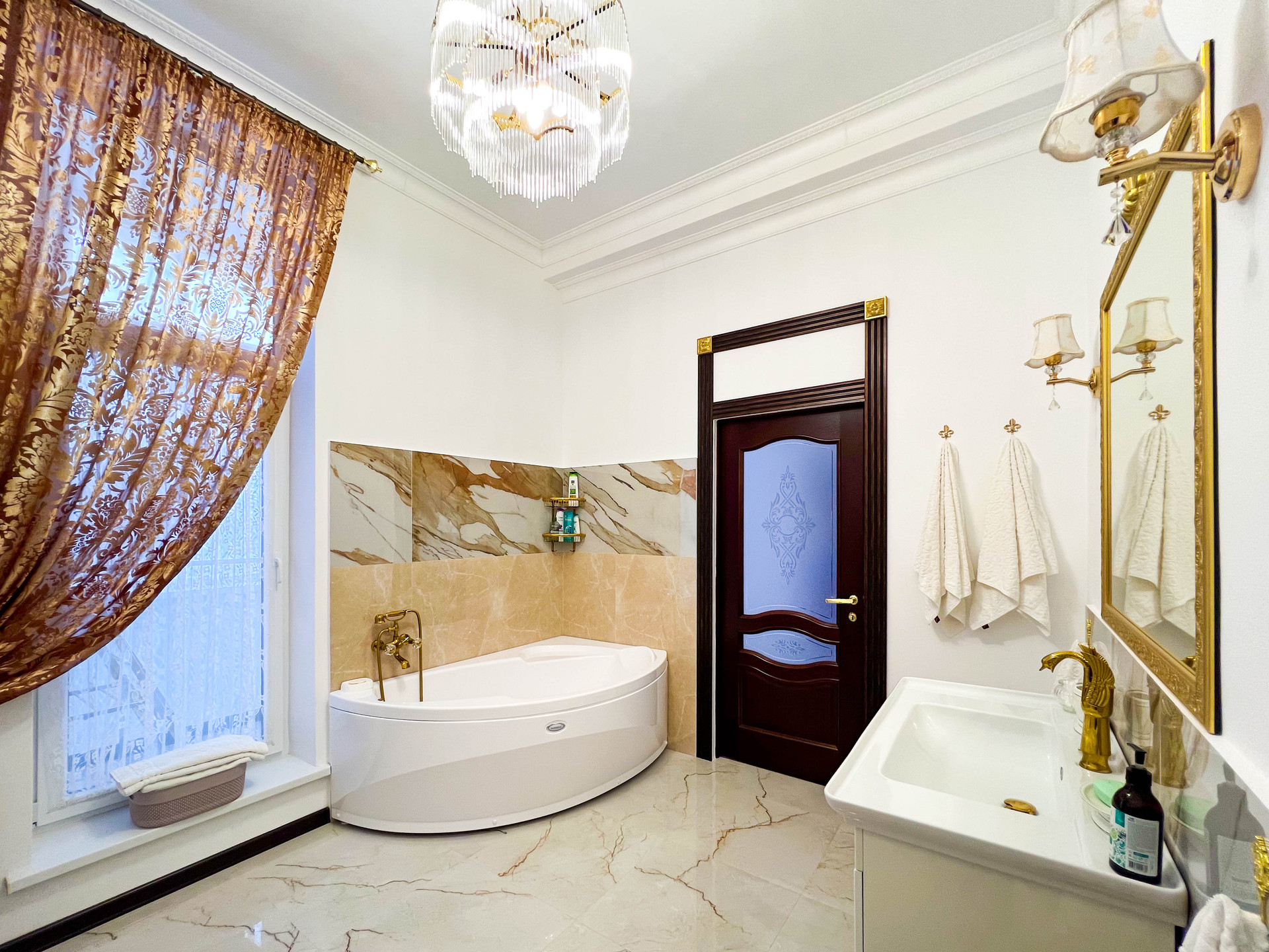 Витражные окна, высота потолков - 3,3 м.