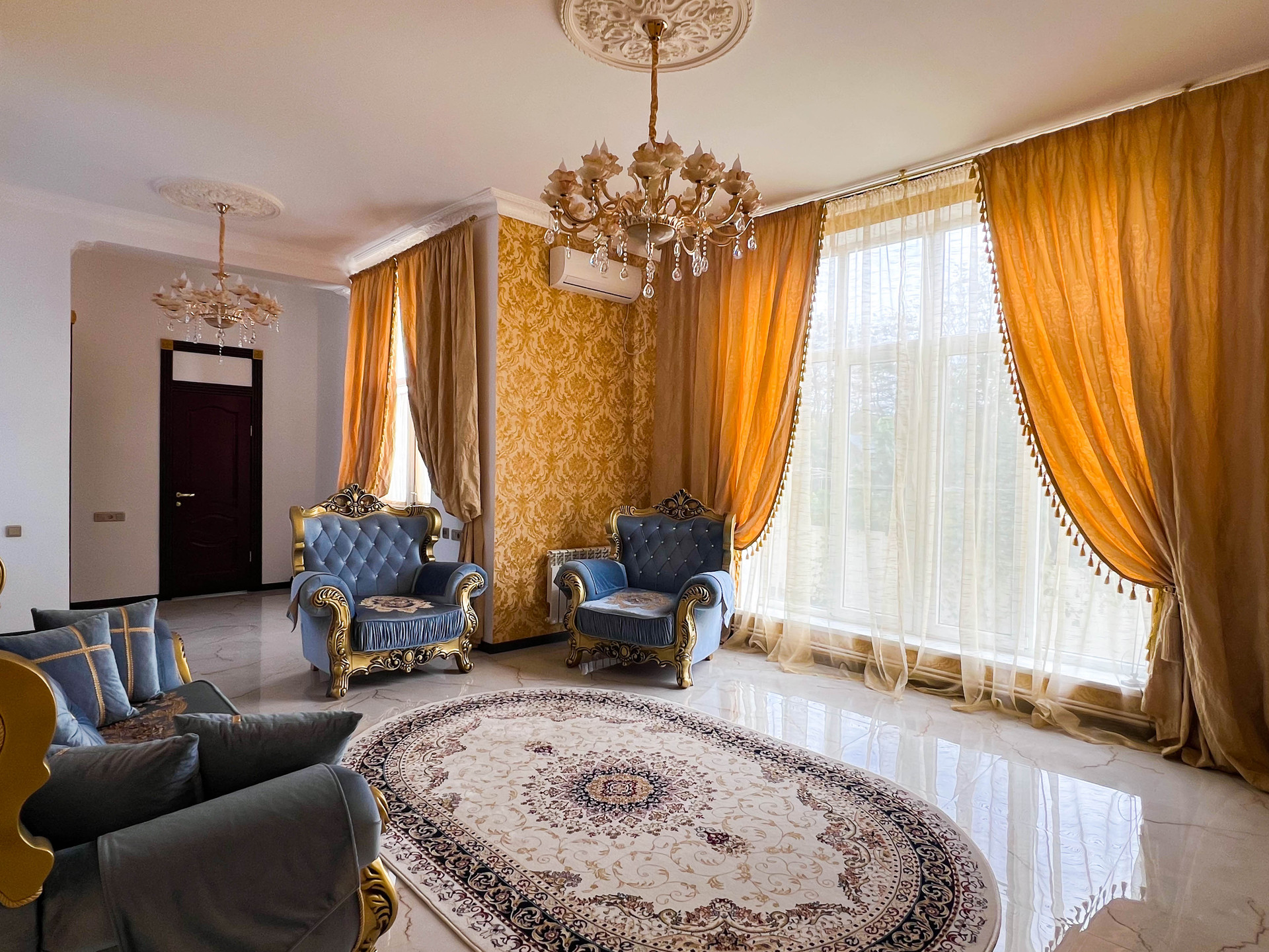В доме 5 спален, гостиная, столовая, кухня, 4 санузла, лоджия.