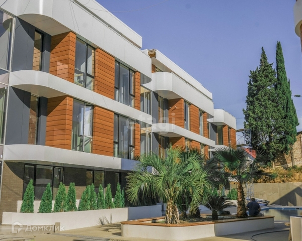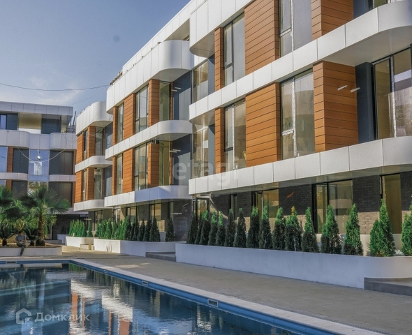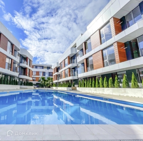 Территория комплекса закрытая: с авторским дизайном ландшафта, собственным огромным бассейном, зонами отдыха и детской игровой площадкой.