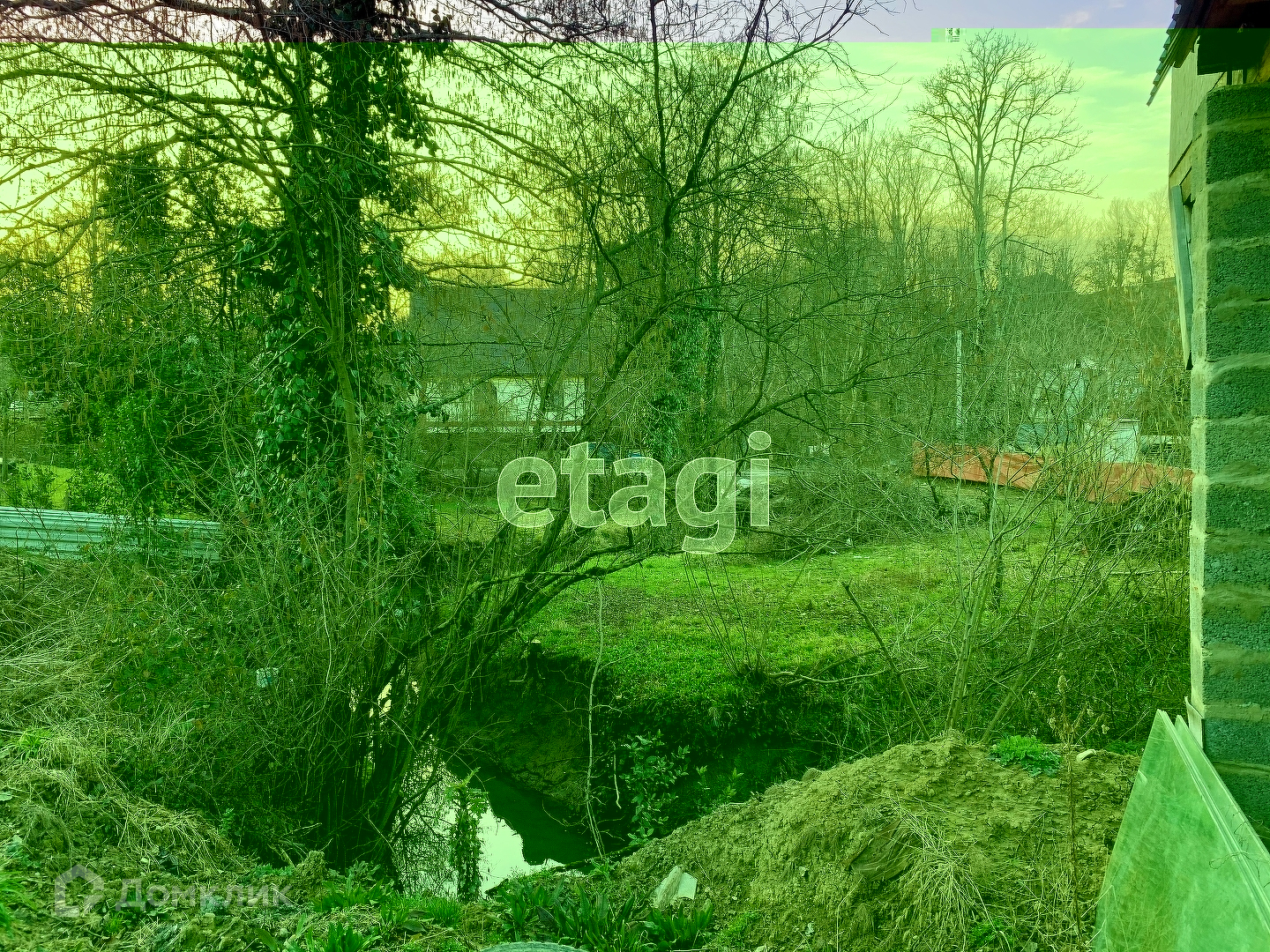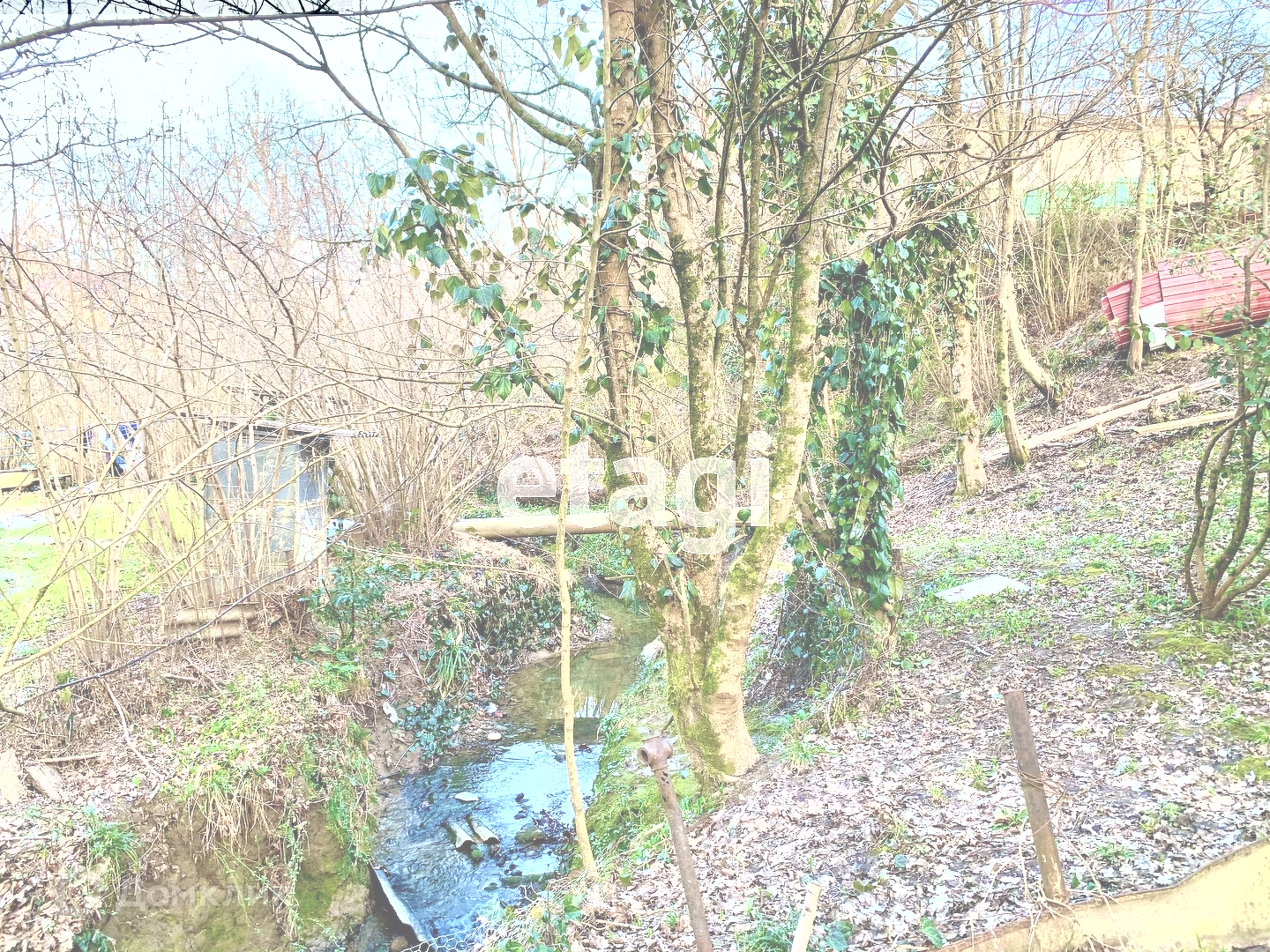 Через участок проходит живописный ручей.