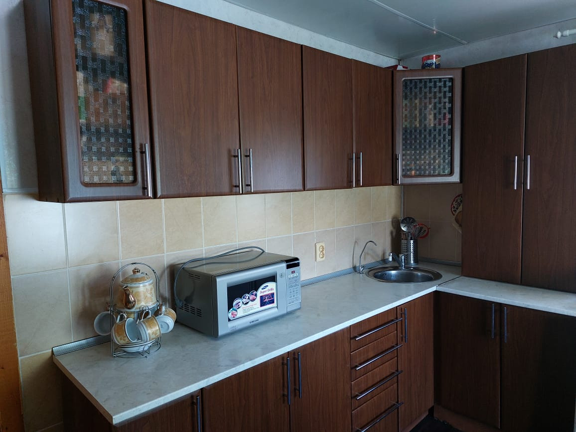 Кухонный гарнитур остаётся. Вода, газ централизовано.