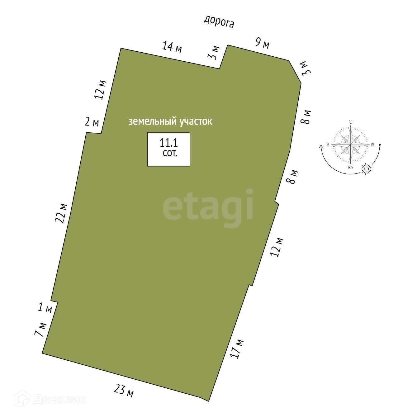 Площадь участка 11.1 сот.