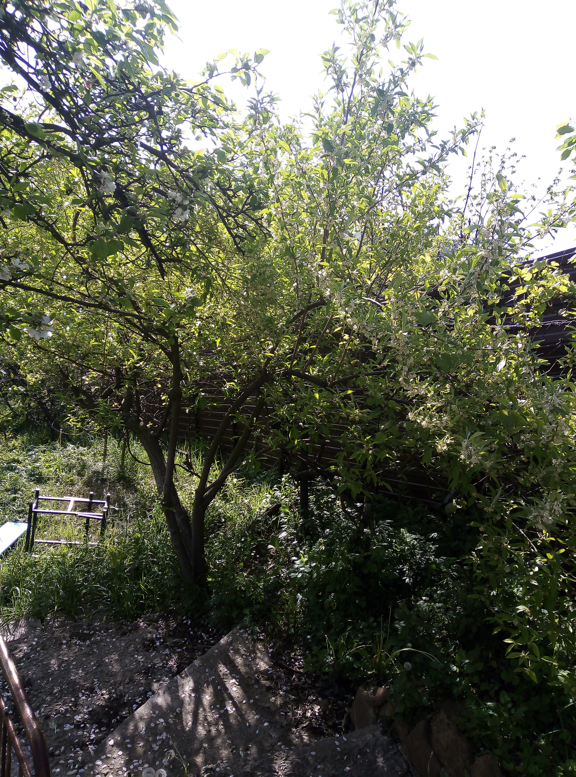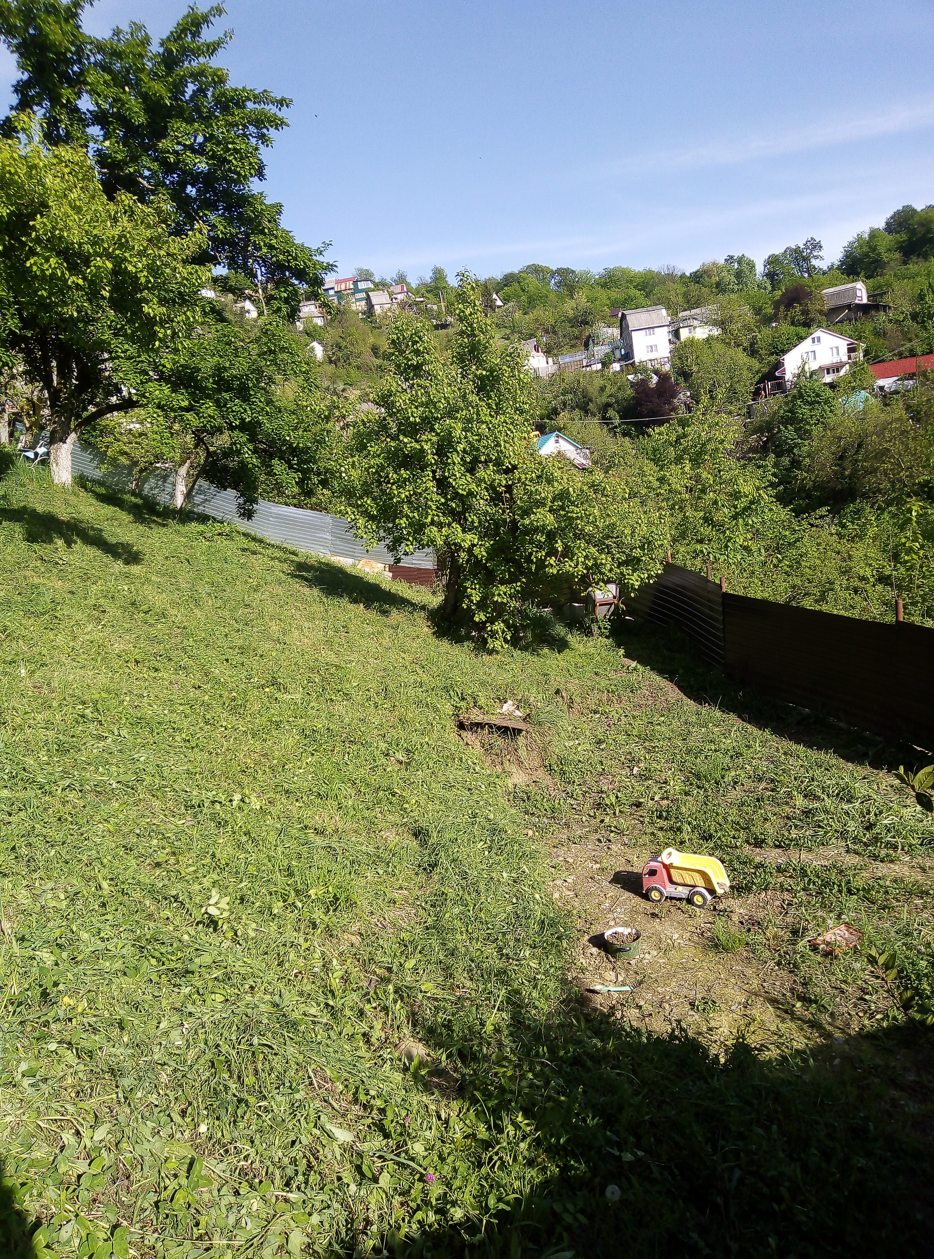 Есть много плодовых деревьев: яблоня 6 шт.,груша 3 шт., хурма 4 шт., инжир 2 шт., алыча 3 шт., слива 5шт., барбарис 2 шт., гранат, виноград.