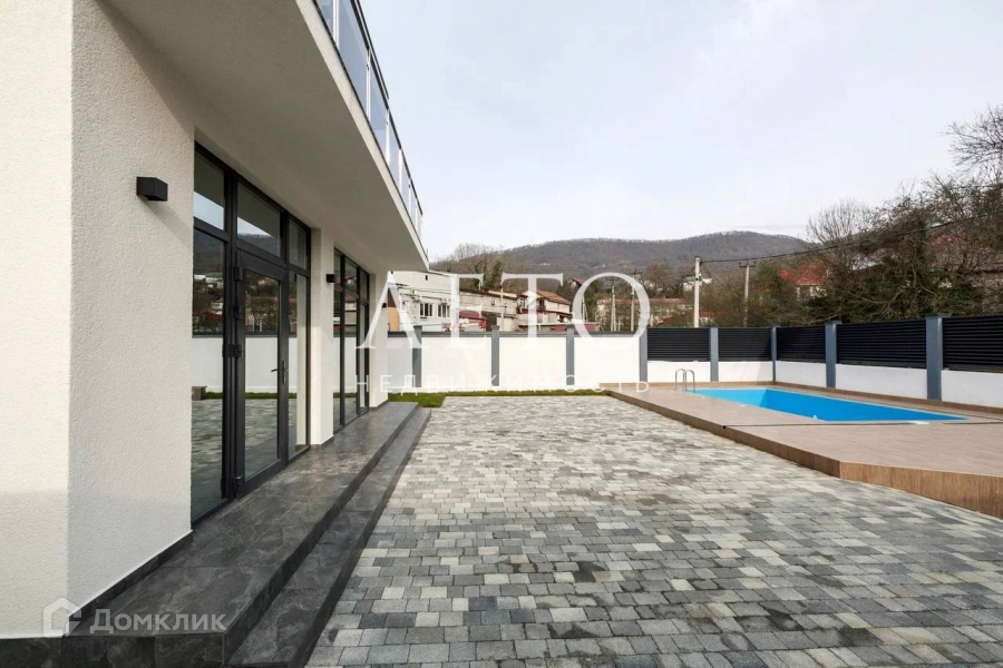 Бассейн, брусчатка во дворе.