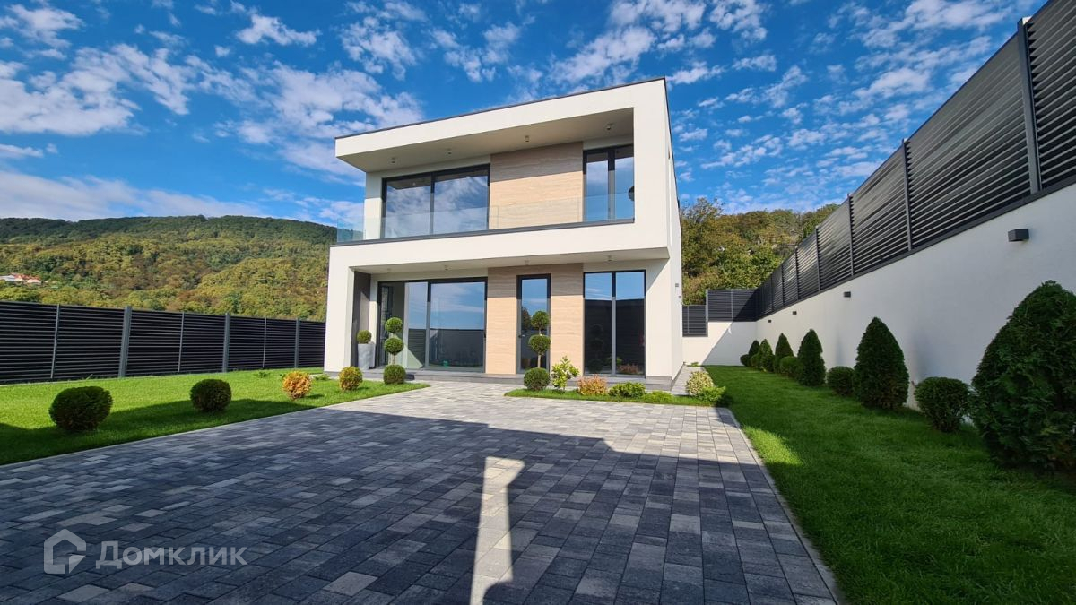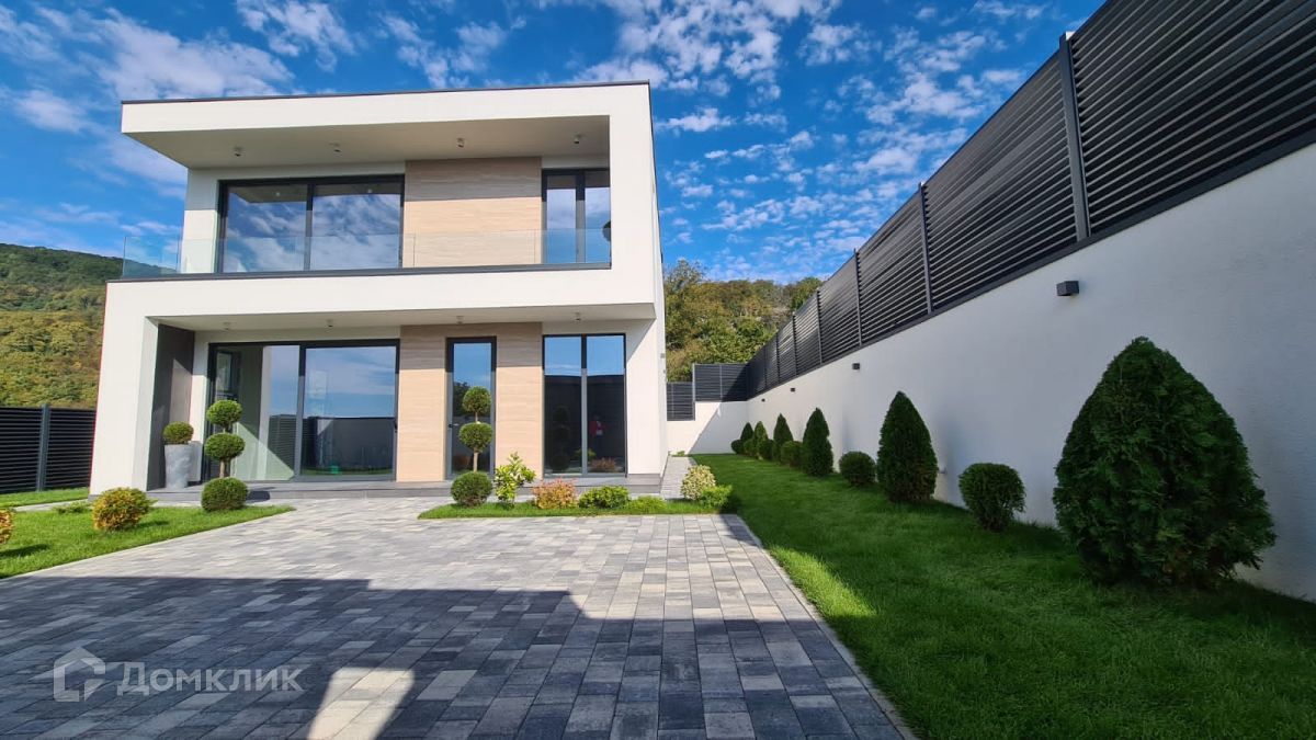 Выполнена качественная отделка фасада. Из панорамных окон открывается шикарный вид на горы.