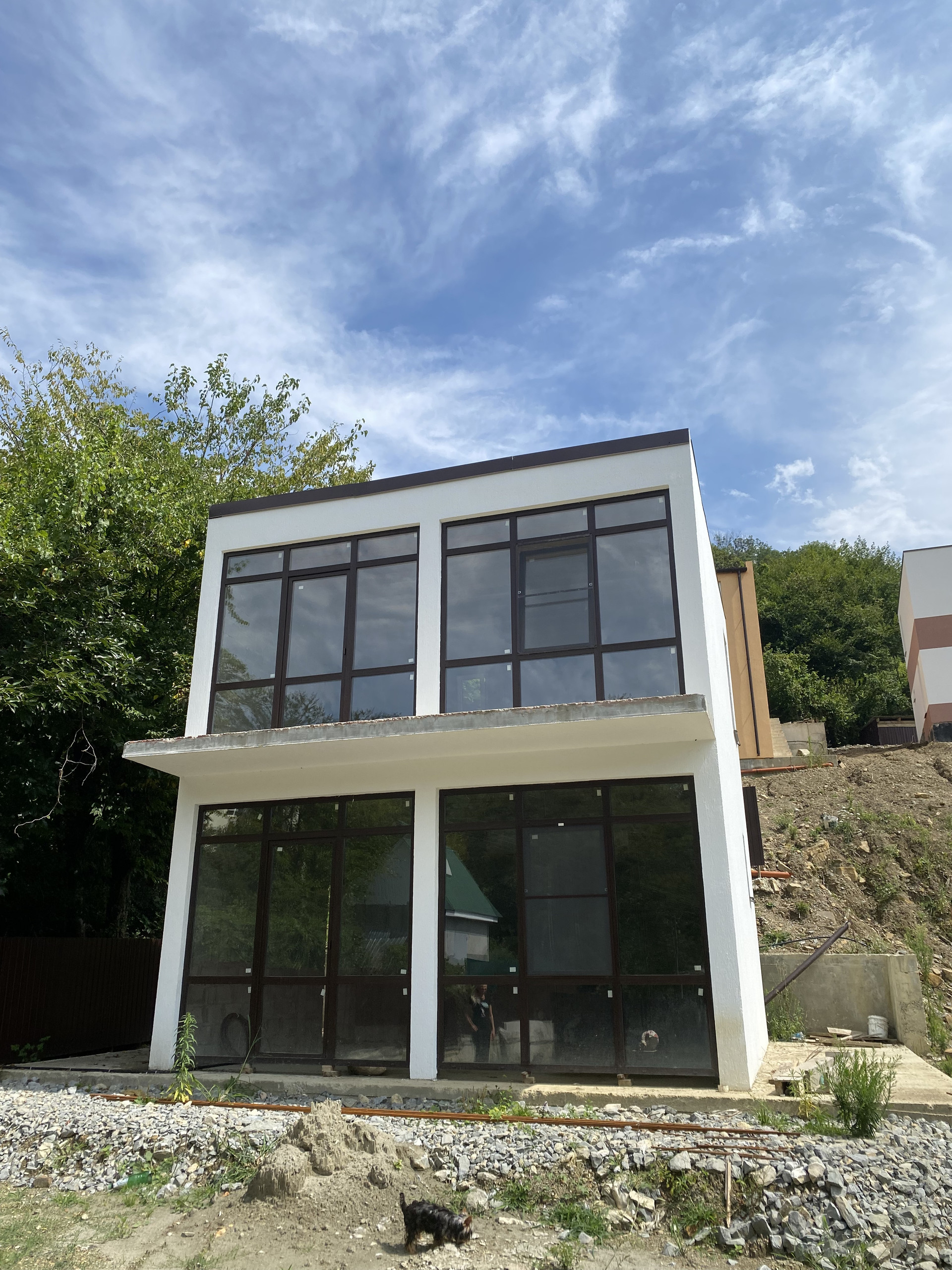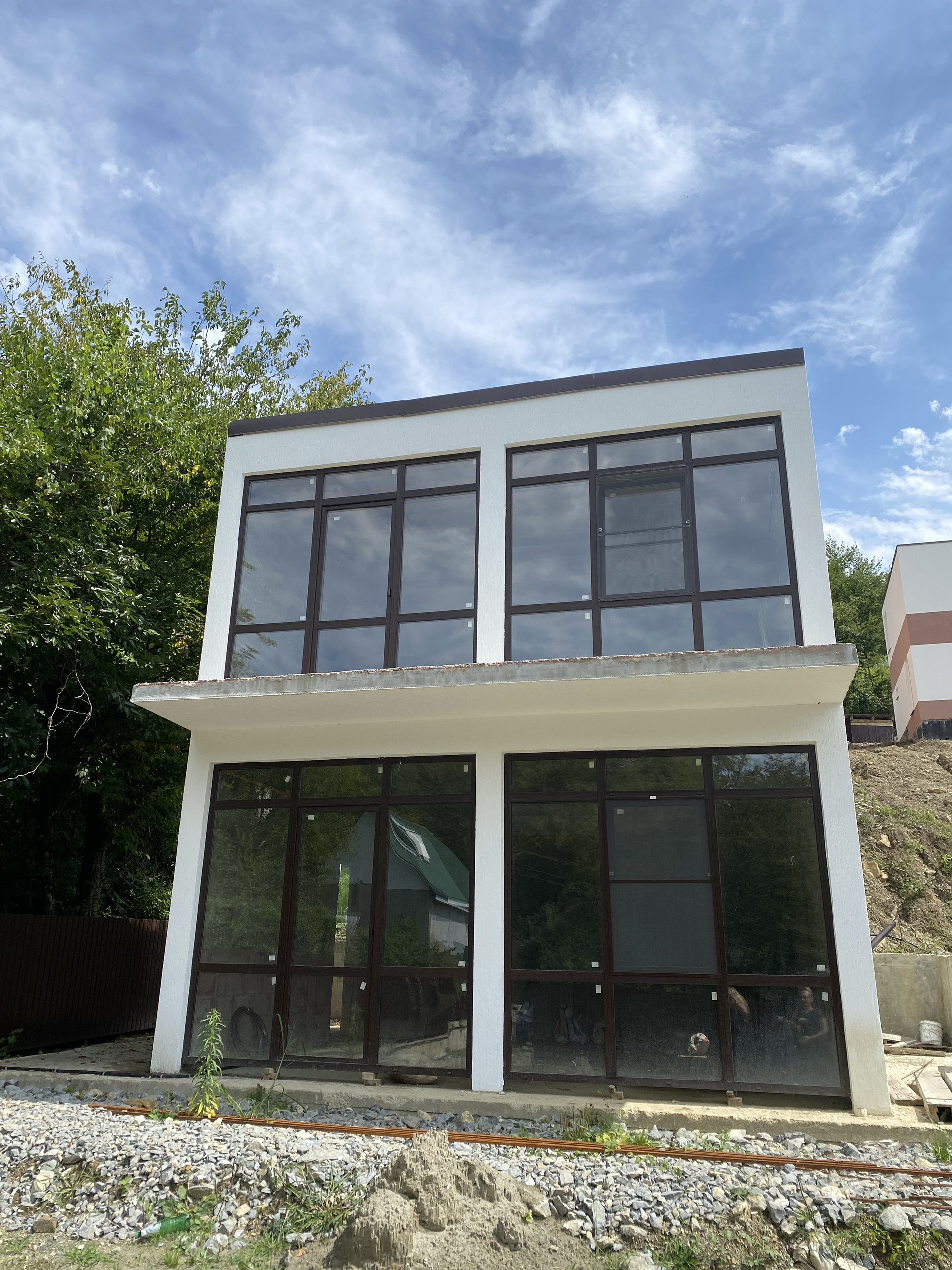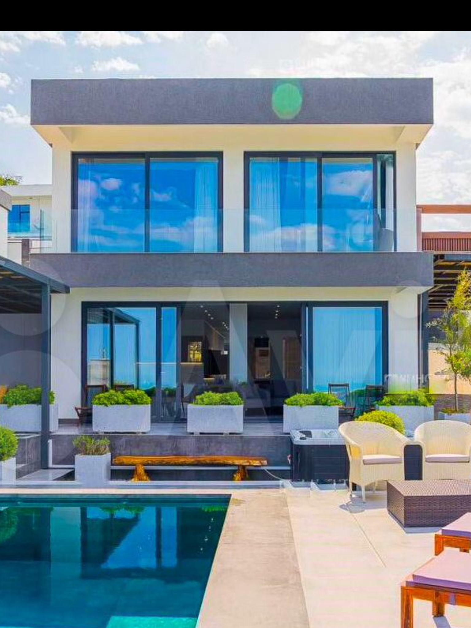 Коттедж выполнен в стиле хайтек и отлично вписывается в южный ландшафт на втором этаже большая терраса с видом лес  Район динамично развивается и застраивается красивыми домами  Территория включена администрацией и мэром в генплан развития города Будет делаться ещё одна новая дорога к этому жилому массиву так как это  центральная часть города Сочи