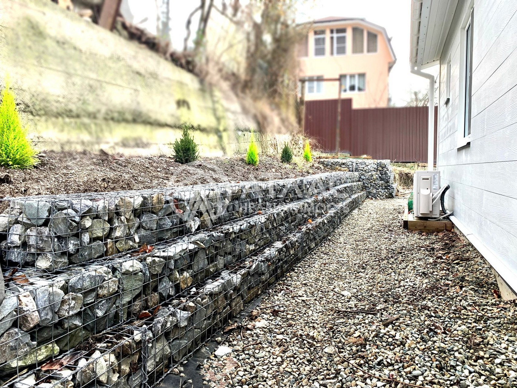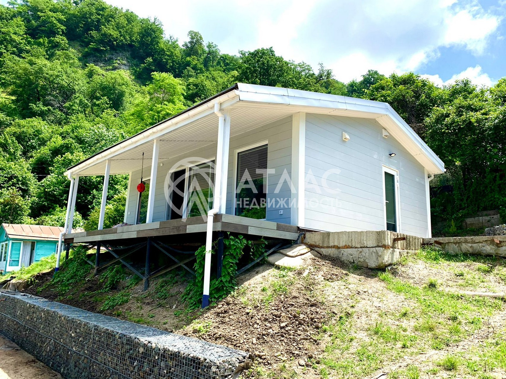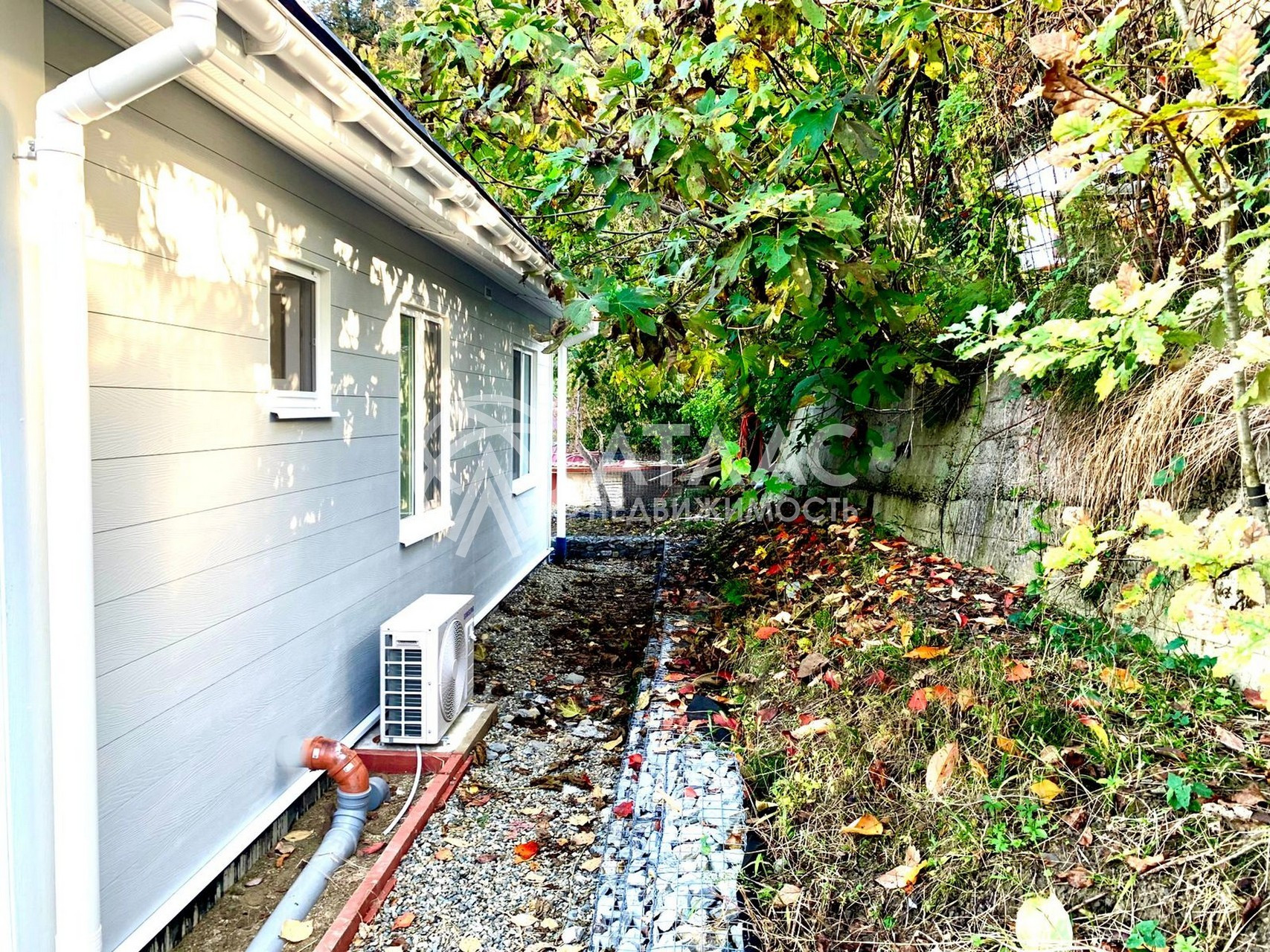 Фасад выполнен из фиброцементных панелей (50 лет гарантии), дом стоит на утепленной монолитной плите и на сваях.