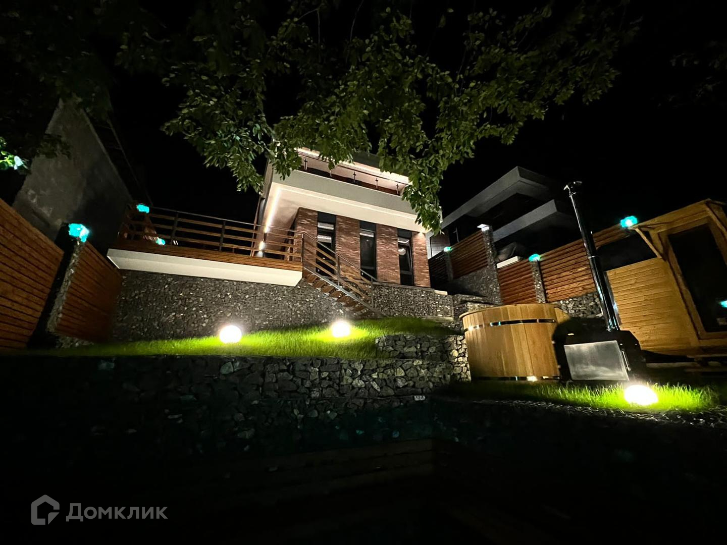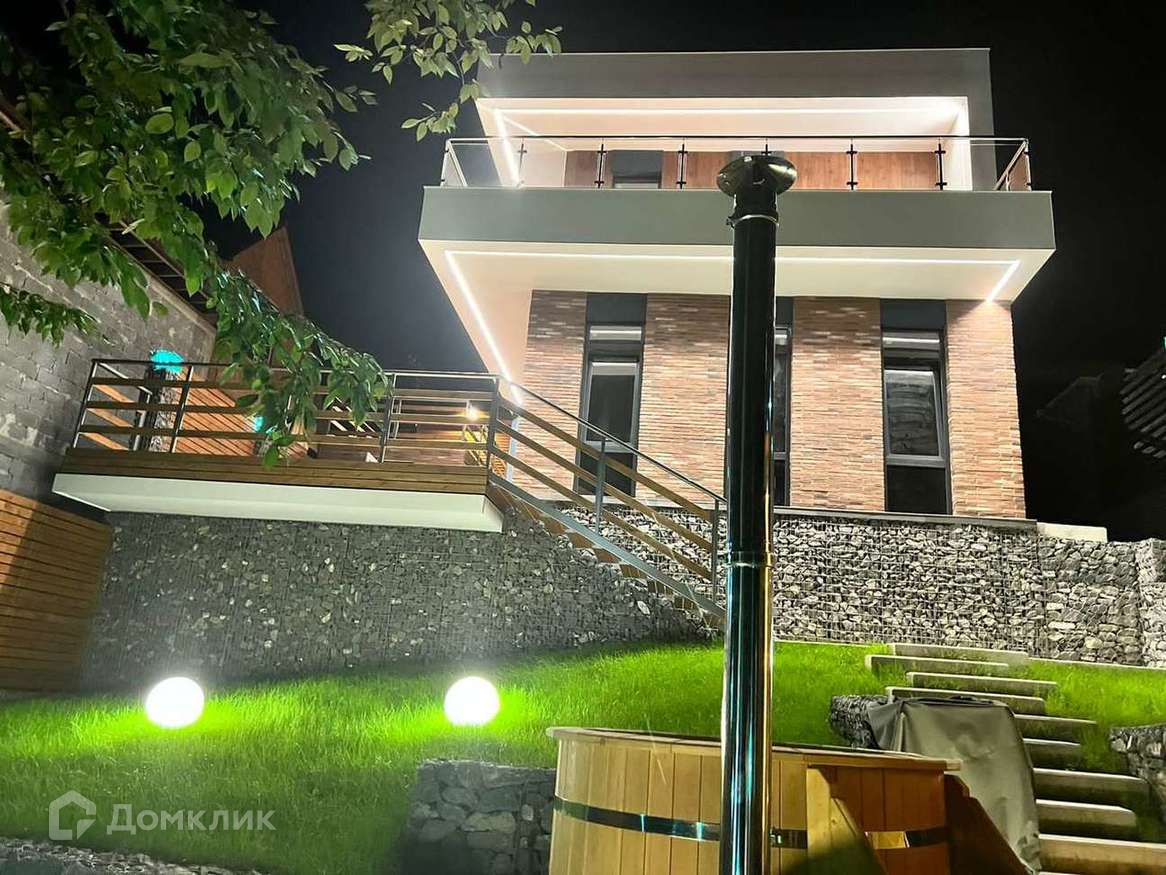 На территории установлено линейное освещение дома и ступеней, произведено озеленение. Парковка на три машины. Коммуникации: свет от СНТ, канализация-ЛОС, вода- водопровод, газ рядом, есть возможность подключения.