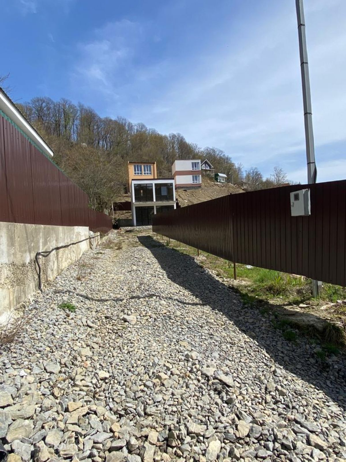 Участок ровный. Изготовлен из пеноблоков. Свет, вода, интернет. Панорамные окна. Черновая отделка. До остановки общественного транспорта 15 минут пешком.Номер объекта: #150/600377/11901