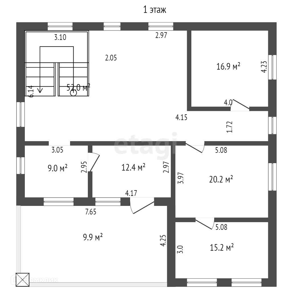 Первый этаж: просторный холл, спальня, кухня-столовая, ванная комната,  зимний сад.
