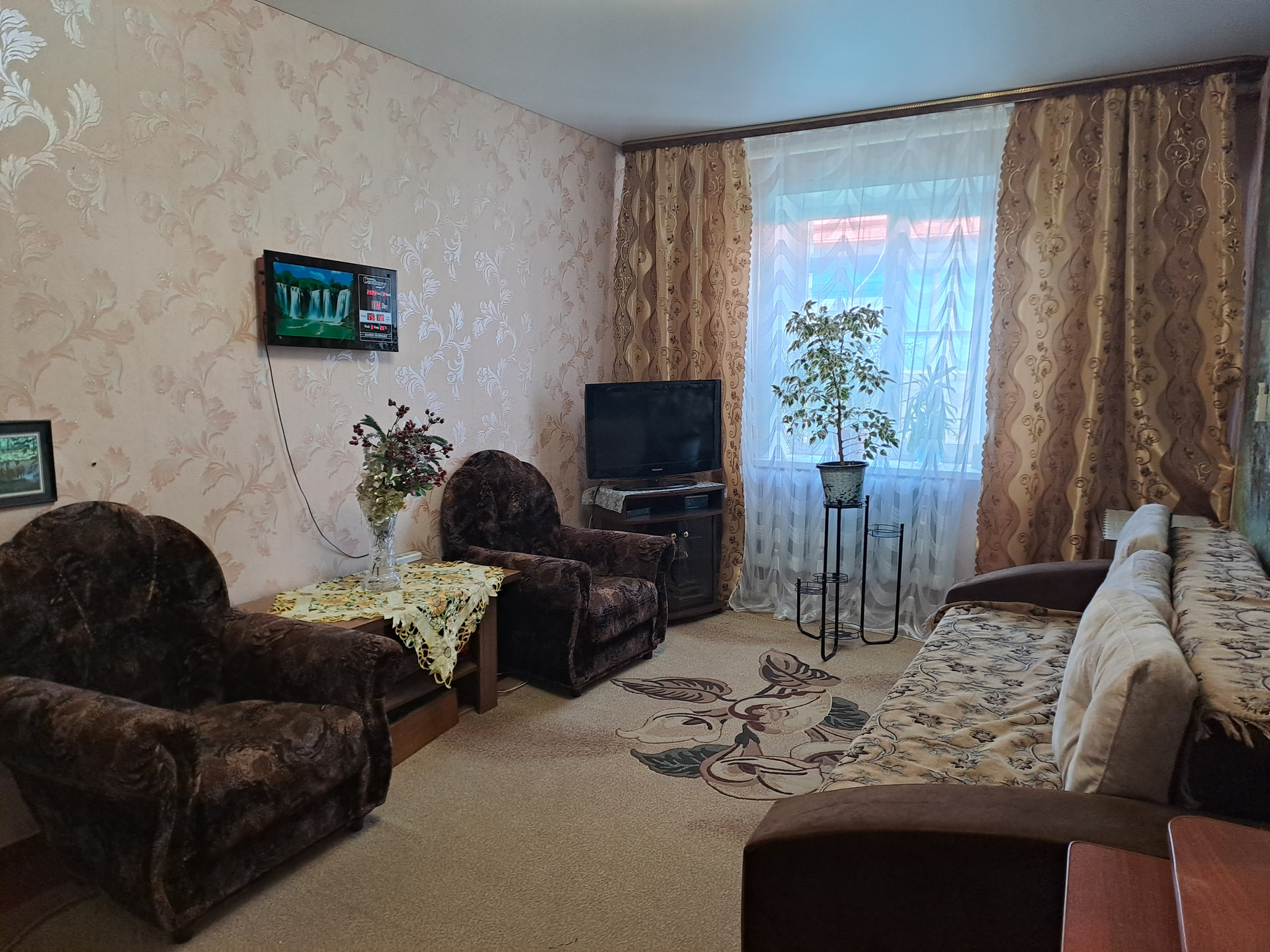 Кирпичный теплый дом площадью 93,3 кв.м, расположен на участке 7,5 соток. В доме 5 жилых комнат, кухня, ванная, туалет, топка, в том числе 3 спальни, просторный светлый зал и гостиная. Большая кухня - 14 м2, вместительная ванная. В доме установлены пластиковые окна. Центральный водопровод. Интернет, спутниковое ТВ.