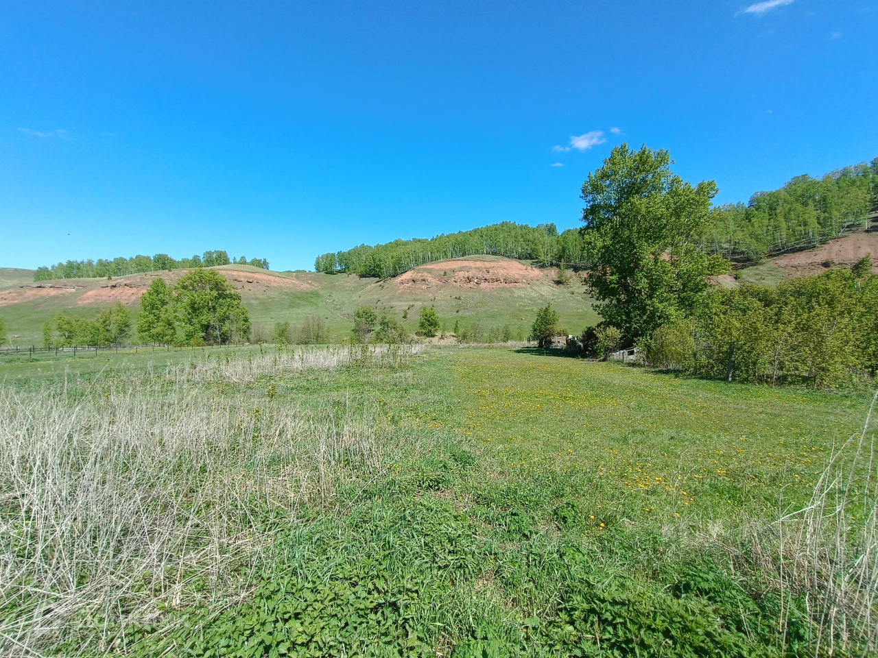 За огородом протекает речка. Растут грибы и ягоды.