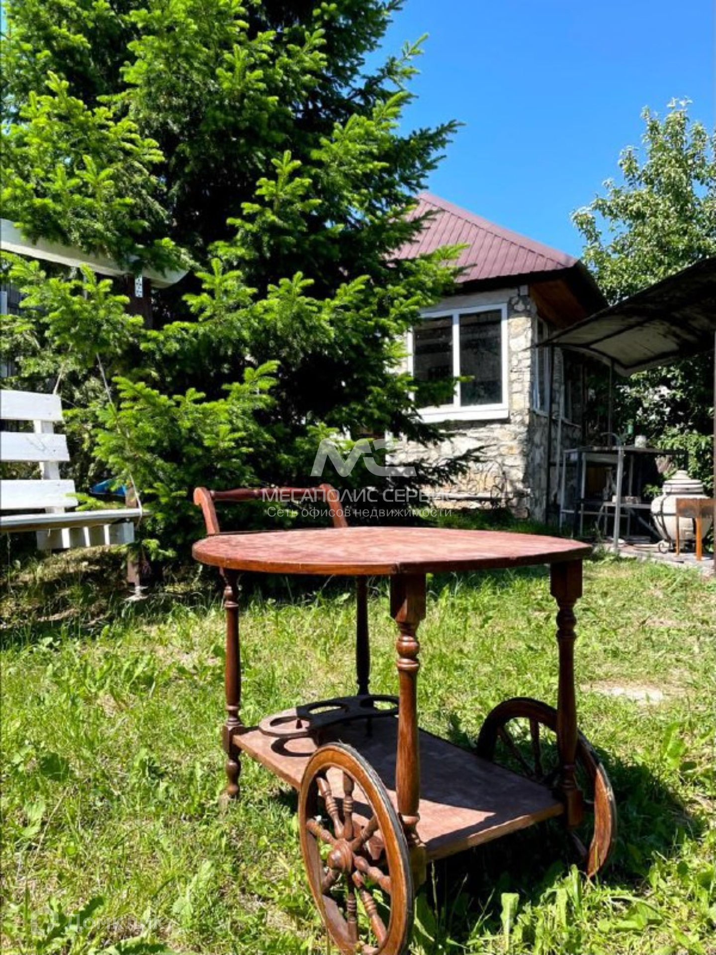 На территории участка есть мастерская, качели, мангал, дровник, вольер для собаки. Сам участок выровнен и укреплен по уровню.