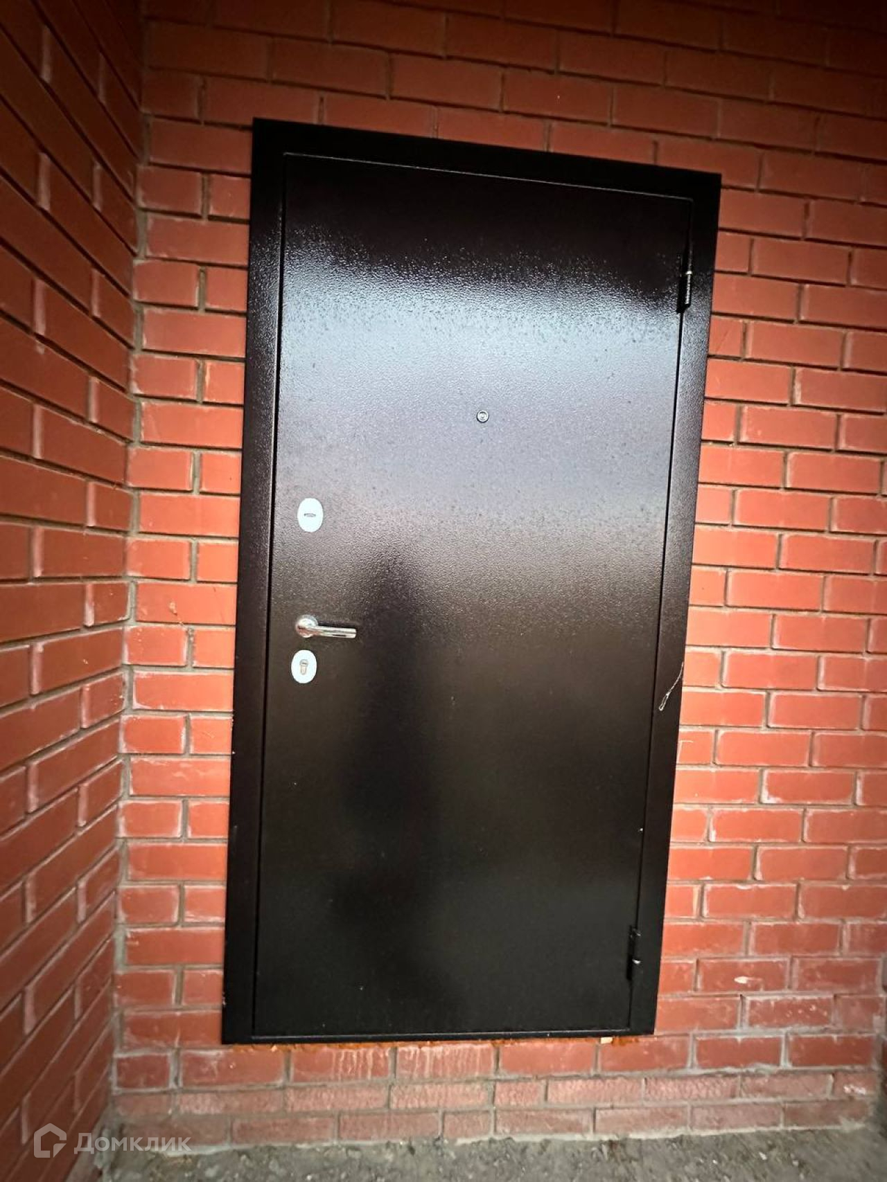 Дверь металлическая, шоколадная, окна пластиковые.