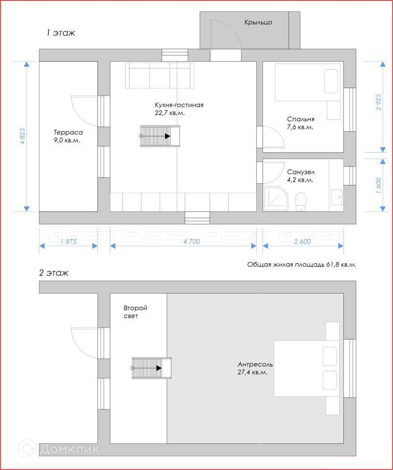 Общая площадь 61.8 м2