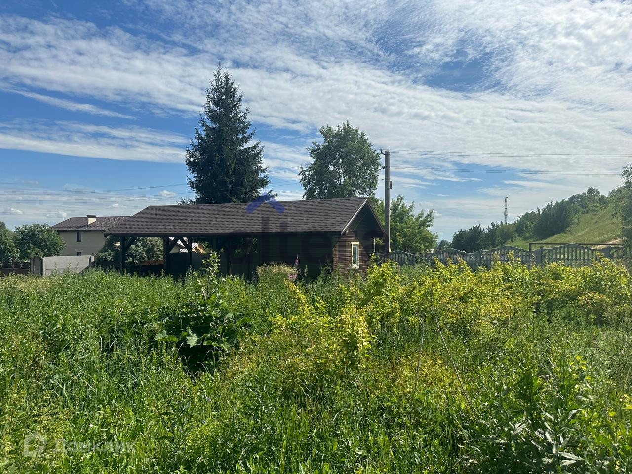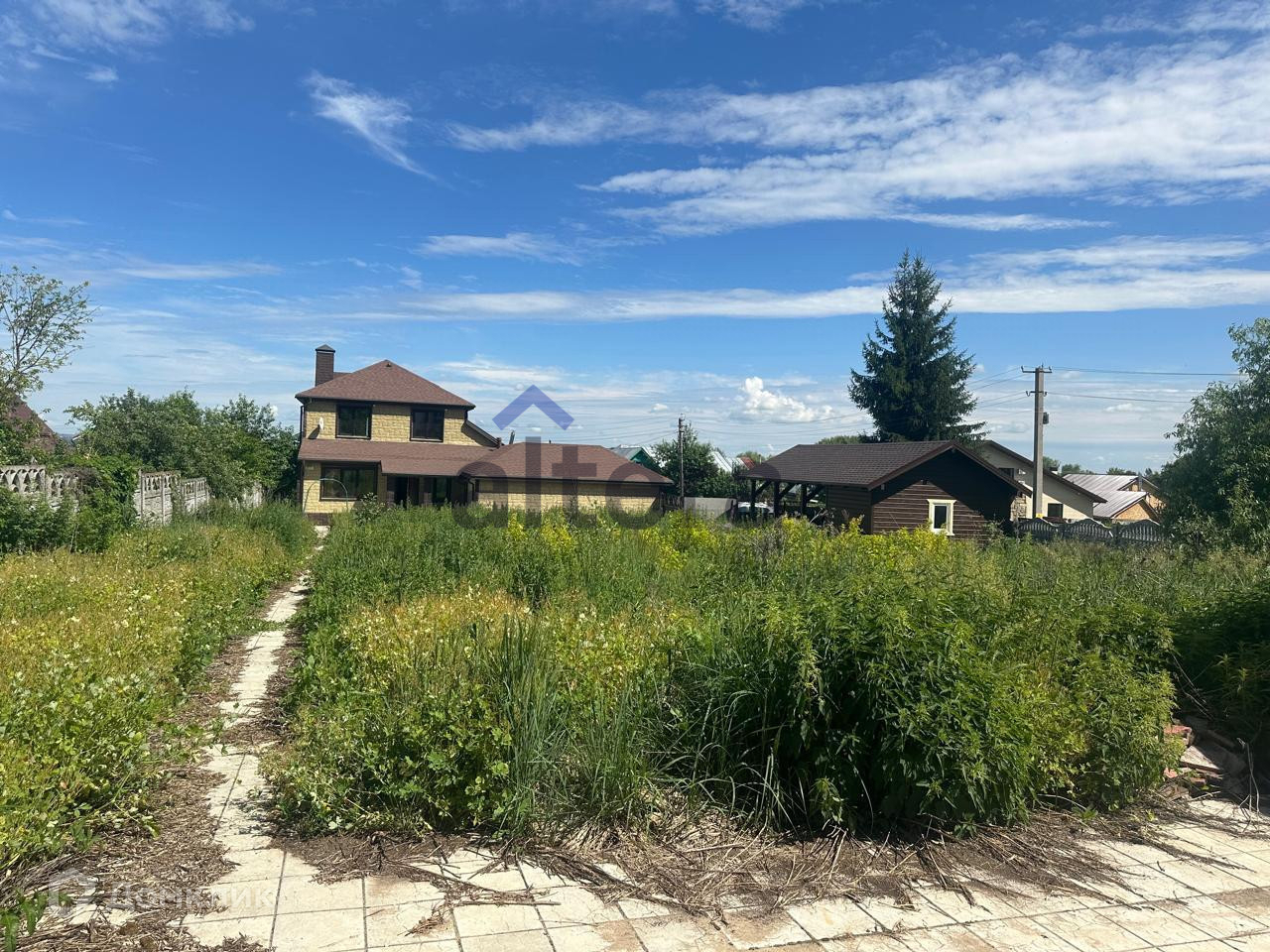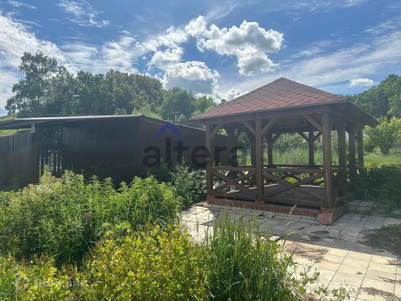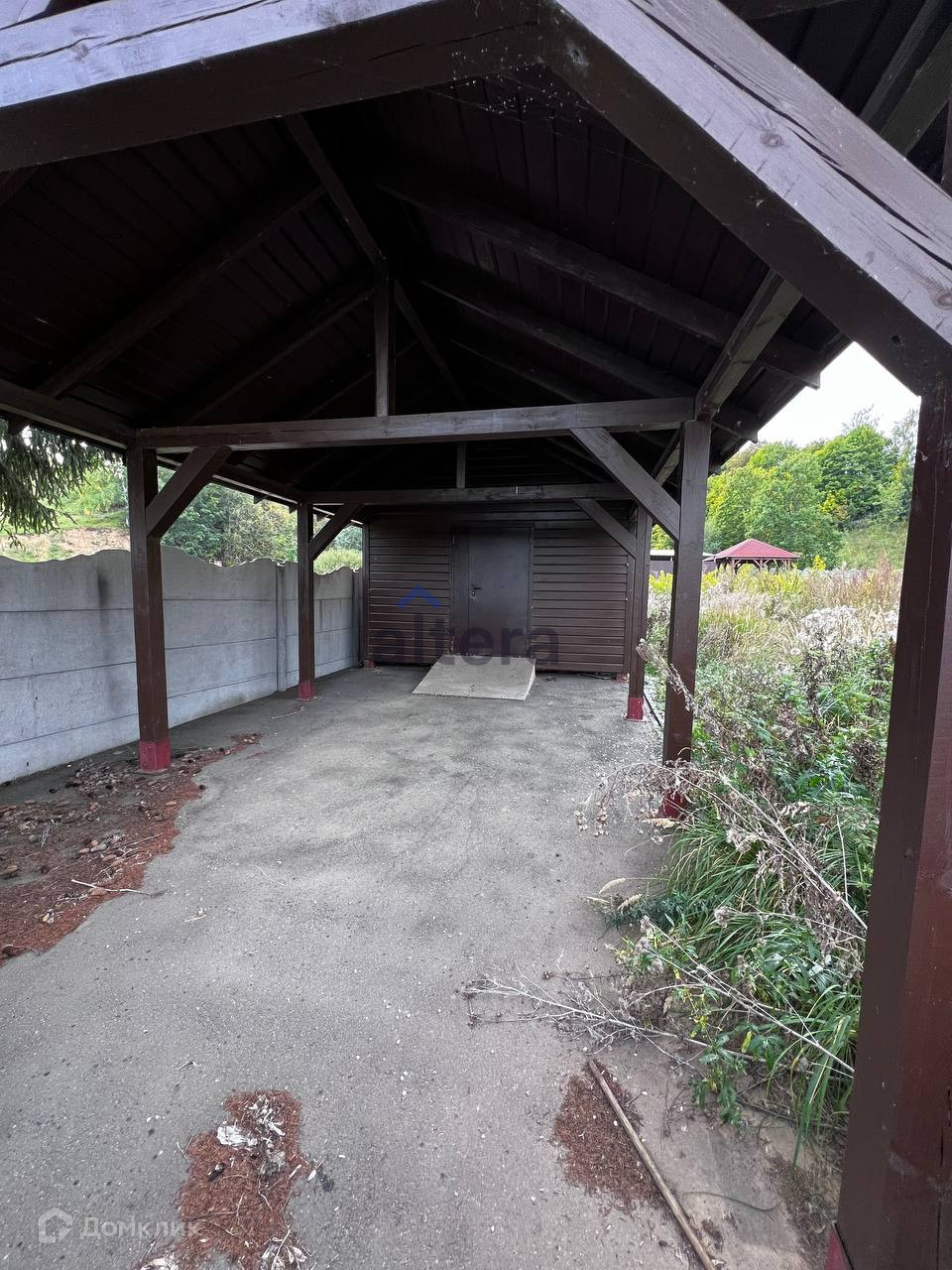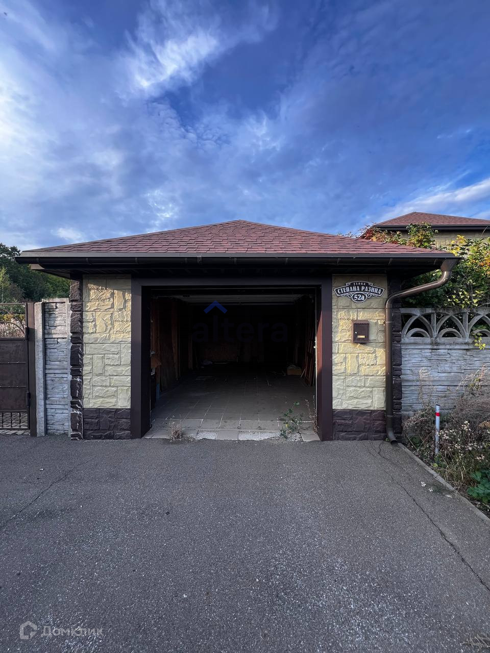 Участок 17 соток, огорожен забором. Имеется закрытый гараж с автоматическими воротами, имеется навес для машины, на участке есть беседка.