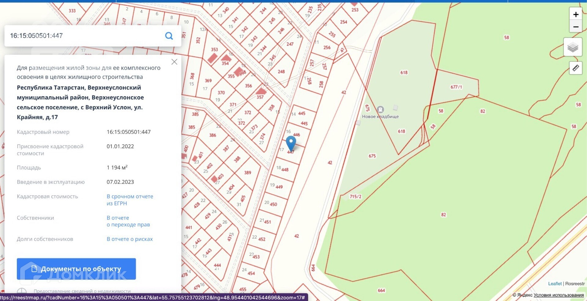 Второй участок: 16:15:050501:447