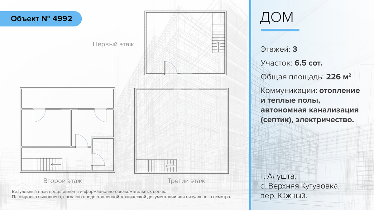 3-этажный дом, 226 м2, на продажу в селе Верхняя Кутузовка, Южный переулок