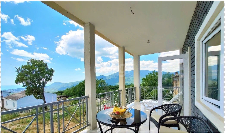 Дом площадью 175 м², с пятью комнатами, кухней-гостиной, тремя санузлами и двумя террасами с изумительными видами на горные и морские пейзажи.