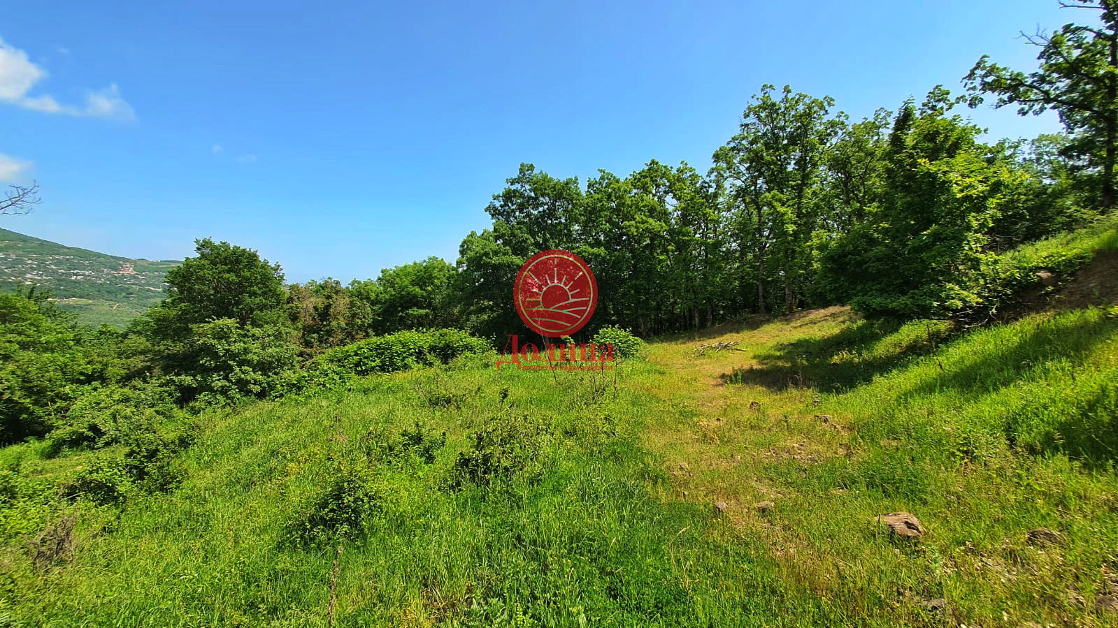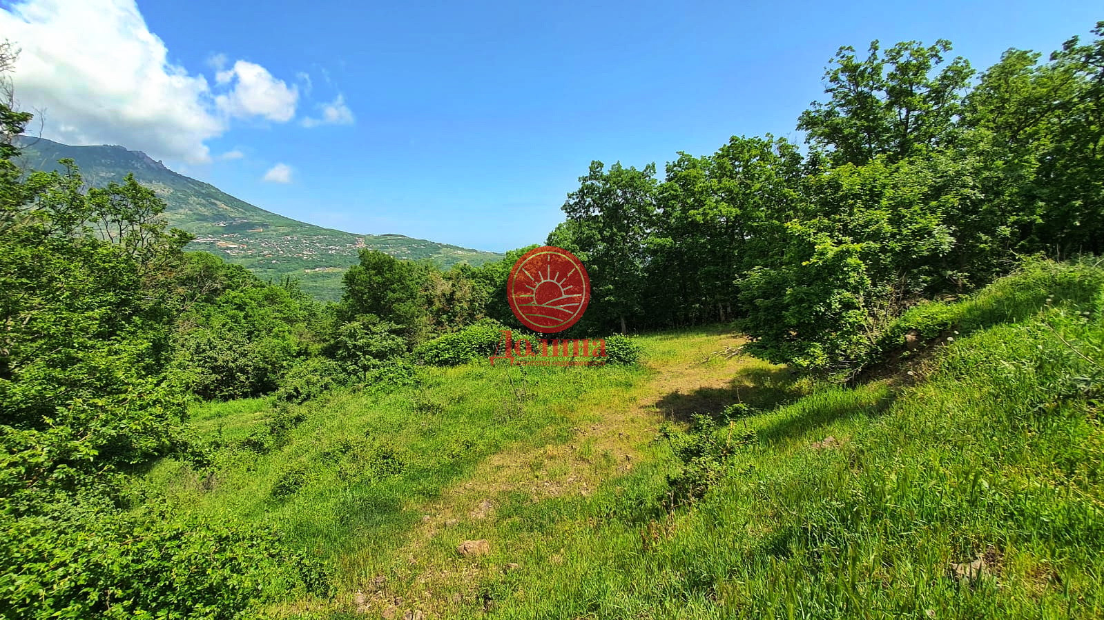 Участок имеет не перекрываемый вид на горы, при строительстве двух этажного дома открывается вид на море.